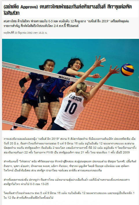 อย่างนี้ก็ได้หรอ? ยังไม่จบเซ็ต 1 เซ็ต 2 แต่เดลีนิวส์ลงข่าวว่าไทยแพ้สหรัฐ 3-0