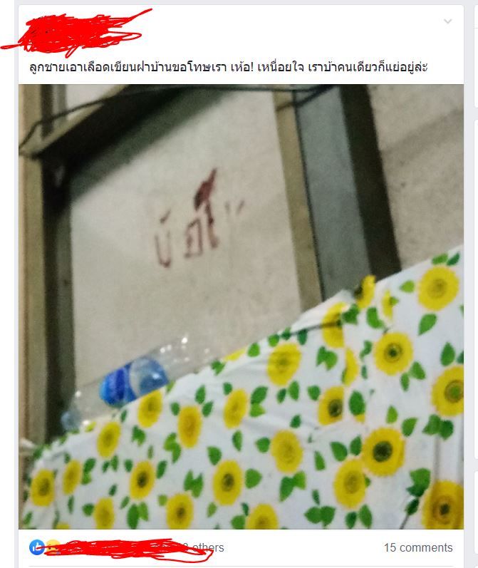 คนเป็นแม่ที่มาโพสต์บอกว่าเป็นเลือดลูกชายเขาเอง และเคยชวนลูกชายไปตายด้วยแต่ลูกบอกว่าไม่อยากตาย