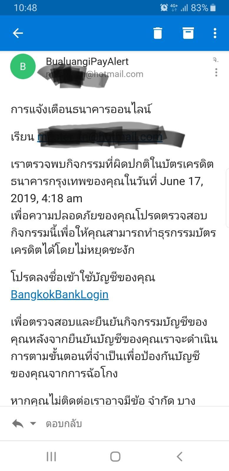 เตือน เมล์ แจ้งเตือน จาก ธ.กรุงเทพ (ปลอม) หรือป่าว