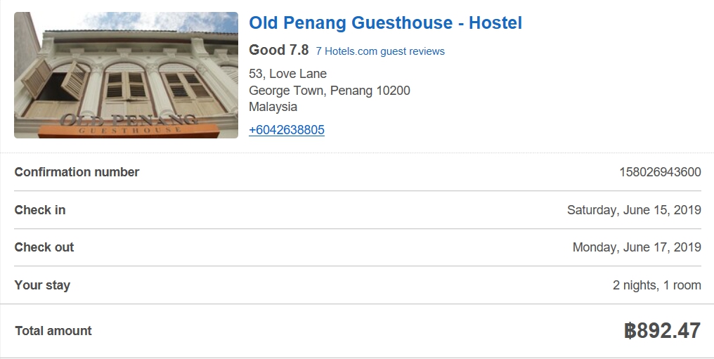 1. ค่าห้อง พัก แบบ โฮสเทล ห้องเดียว 1 เตียง ห้องน้ำรวม ราคา ที่ 892.47 บาท (ยังไม่รวมค่า ภาษีนักท่องเที่ยว 10 RM/คืน)
