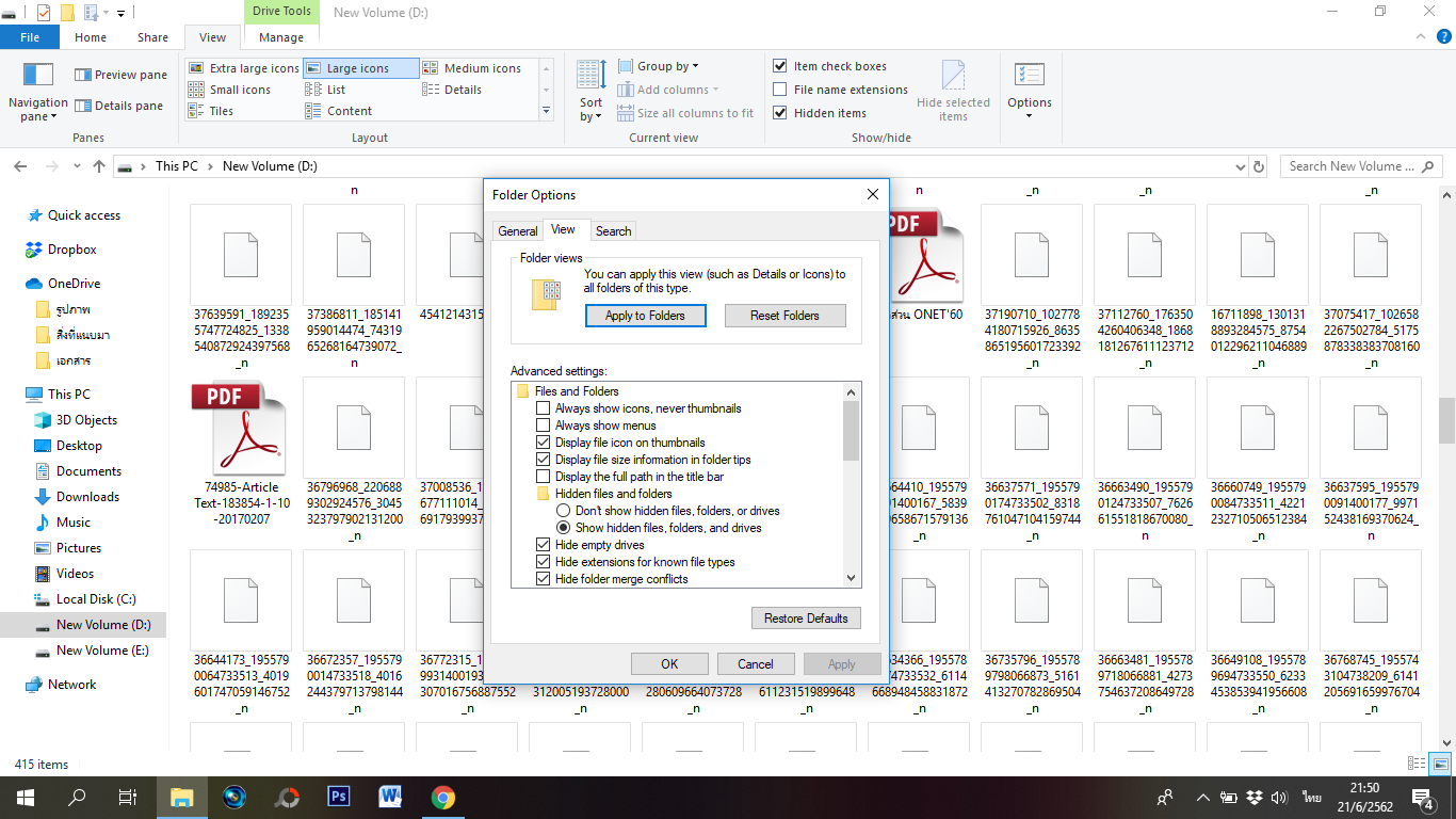 ไม่แสดงภาพตัวอย่าง ถ้าไม่กดเข้าไปดูถึงจะขึ้น [ windows10 ]