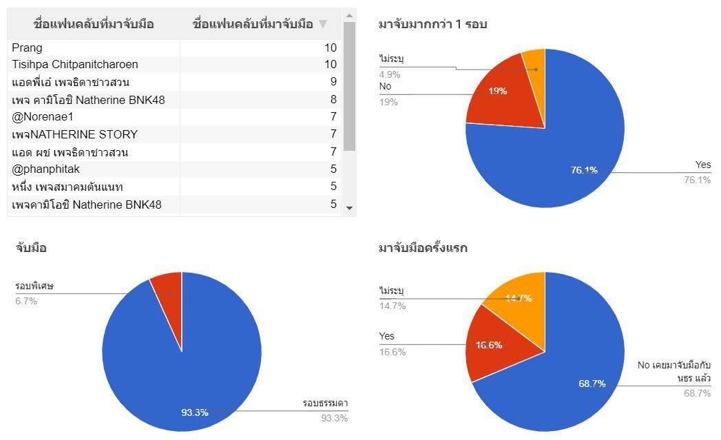 คนที่มาจับมือน้องแนทเธอรีน ส่วนใหญ่จะมาจับมากกว่า 1 รอบ(ในวันนั้น)