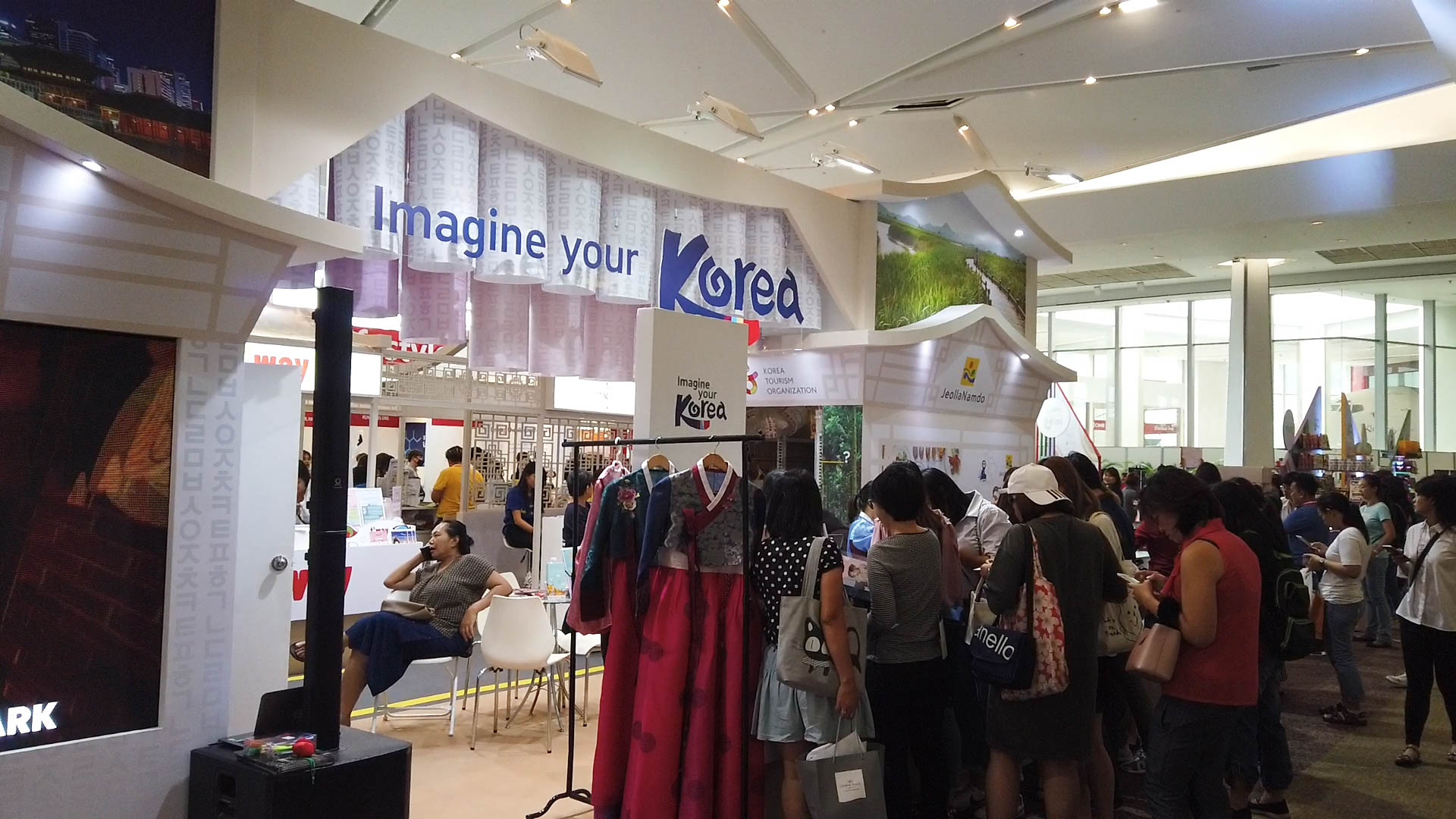 เดินเข้ามาในฮอลล์ย่อนก็จะมีบูธต่างๆมากมาย ทั้งสาย Beauty สาย Animation แต่ส่วนที่สะดุดตาผมมากเลยก็คือโซน Drama ครับ รวมเอาเหล่าซีรีย์เกาหลีดังๆมากมายมาให้คนได้อินไปกับบรรยากาศในซีรีย์ (ประมาณนั้น) มีซีรีย์ดังๆมากมายครับ เช่น 도깨비 , 남자친구 , 밥 잘 사주는 예쁜 누나 และอื่นๆอีกมากมาย (อันนี้จำชื่อได้เฉพาะเรื่องที่ดูประจำครับ ฮ่าๆๆ) แถมมีให้สวมชุดฮันบกถ่ายคู่กับโปสเตอร์ในซีรีย์อีกด้วย คือใครจะเป็นพระเอก นางเอกซีรีย์ มาบูธนี้ได้เลย มีพร้อมหมดดดด