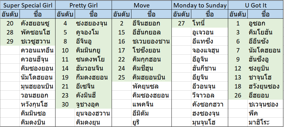 ตามนี้แล้วรู้สึกส่าmoveตัดคนออกยากกว่าu got itอีก ที่เหลืออยู่คือเด็กเก่งๆมีของหมด ต้องออกคนเดียวและทุกคนก็ดูเหมาะสมกับเพลงหมดอีก ดูออกยากสุดล่ะ คิดว่าบยองชานปลิวไม่ก็อาจจะขออกเองเพราะลุคดูคุณชายเกินตัวเพลง