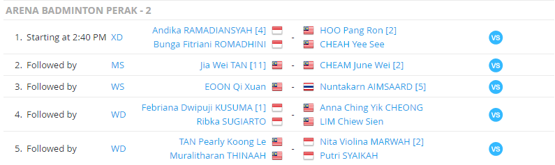 ทุกคู่ ติดตามสกอร์สดผ่านทางคอมพิวเตอร์และมือถือได้ที่ https://www.tournamentsoftware.com/visual-livescore/357A9747-4808-4290-97CA-E7DF40327AC0