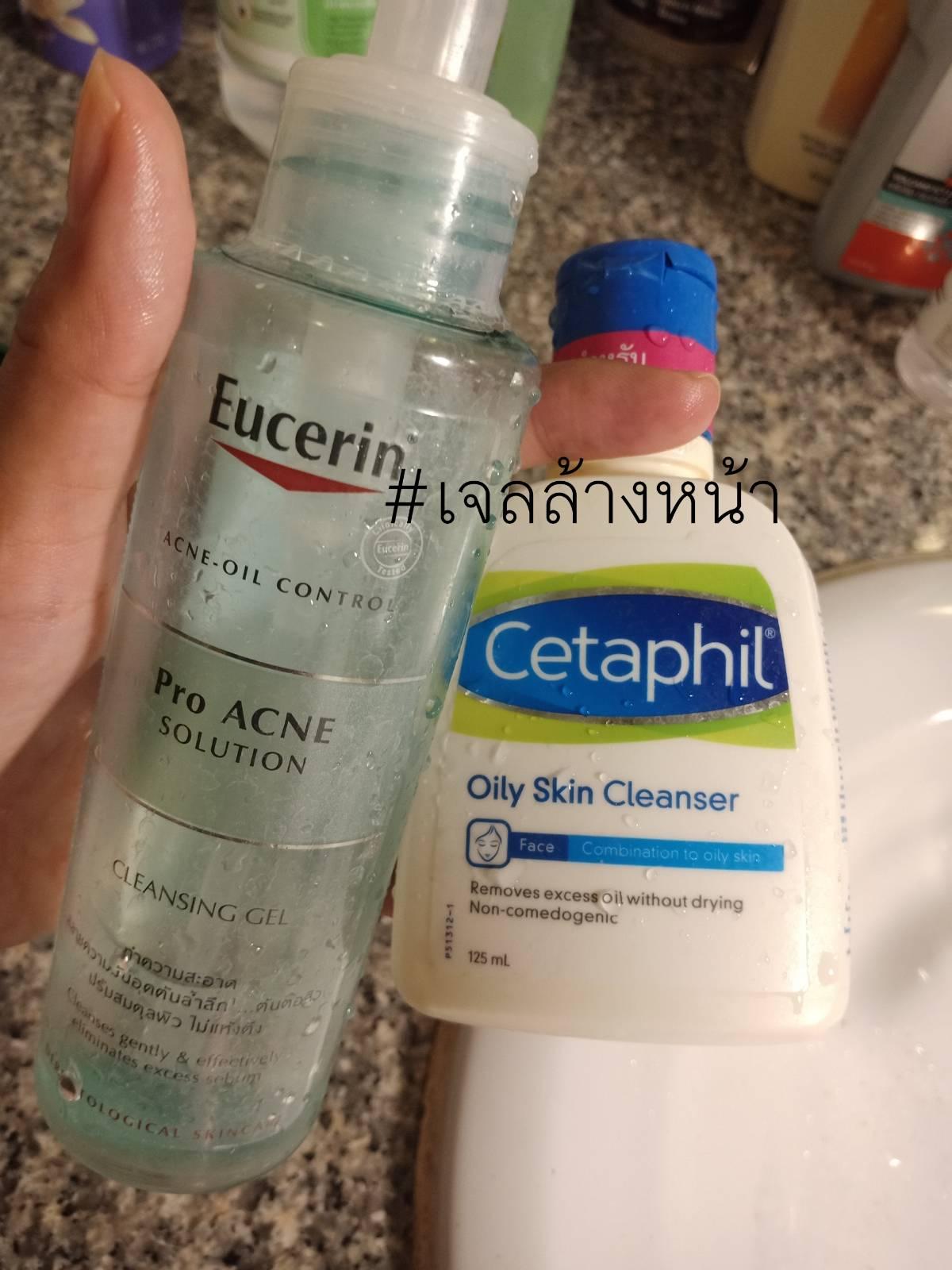 2. ล้างหน้าด้วยผลิตภัณฑ์ที่เป็นเวชสำอางเพื่อคนเป็นสิวโดยเฉพาะ นิดหน่อยเลือกใช้ #Eucerin (แต่แอบราคาแพง) ถ้าเซฟงบลงมาหน่อยก็ใช้ #Cetaphit ก็ได้เหมือนกัน หรือใช้ควบคู่กันไปยิ่งดี
