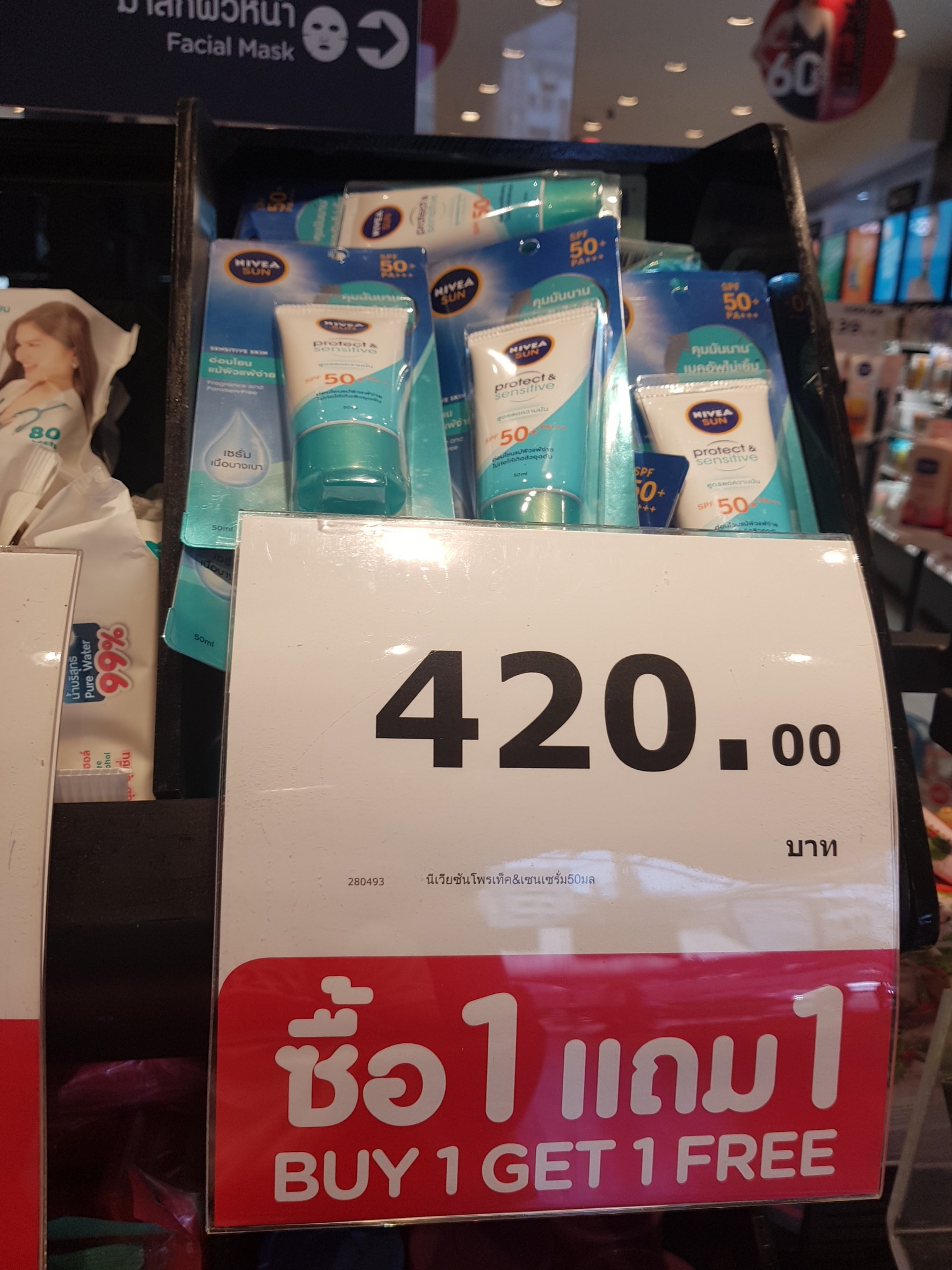 ครีมกันแดดลดหลายตัวเหมือนกันนะ ครึ่งราคาเลย อย่างว่าประเทศที่มีหน้าร้อนตลอดปีแบบเรา