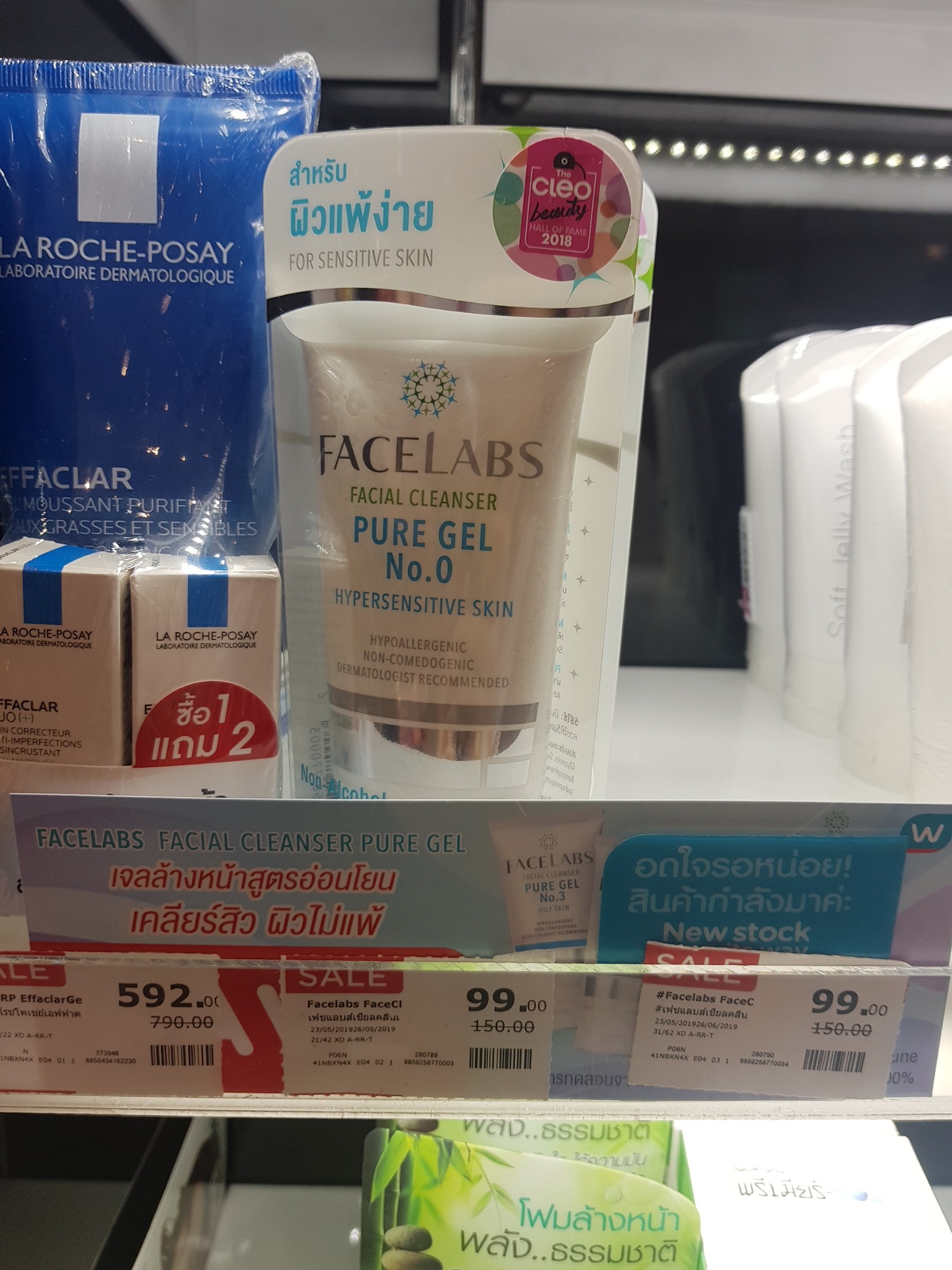 และสิ่งที่ตามหา เจอแล้วจ้าาาา เจลล้างหน้า facelabs จริงๆจะซื้อสูตร 3 คือสำหรับผิวมันแพ้ง่าย แต่มันหมด 555555 นกอีกแล้ว เหลือแต่สูตร 0 สำหรับผิวแพ้ง่ายๆมากๆ ใครเป็นสิวง่าย ลองใช้ได้เลยนะ เพราะเค้าไม่ใช้สารพวก พาราเบน แอลกอฮอล์ ที่ทำให้แพ้ง่ายเลย แล้วตัวเนื้อมันจะเป็นเจลใสไม่มีสี ไม่มีฟอง ไม่มีกลิ่น ลดราคาเหมือนกันเหลือ 99 จาก 150 แต่หมดหลายสาขาเหมือนกันนะ ยังดีที่แถวบ้านยังเหลือ ถึงแม้จะคนละสูตรก็ตามมม