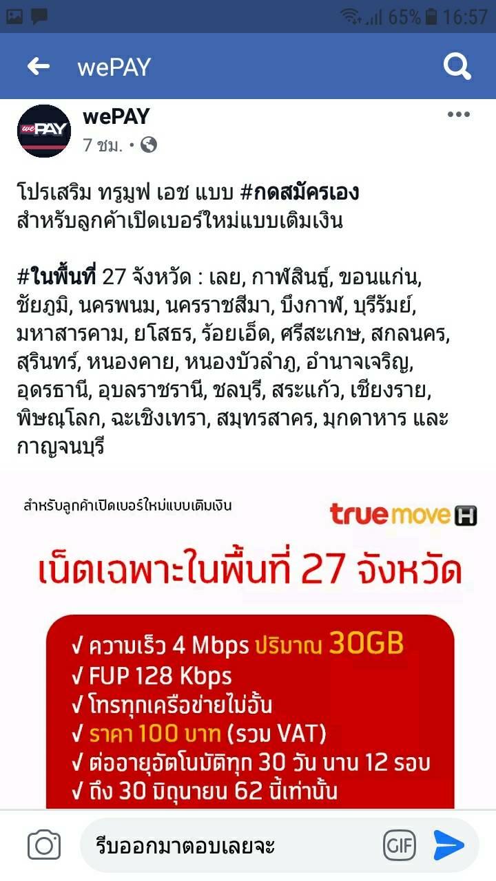 ร้องเรียนข้อมูลโปรโมชั่นของทรูมูฟเอชโรมมิ่ง
