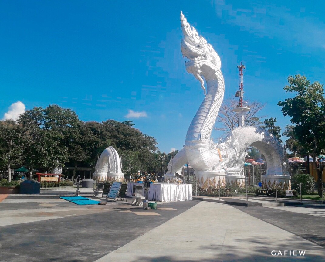 หลังจากที่เติมพลังทานมื้อเที่ยงแล้ว เราก็ไปไหว้สักการะ พญาศรีภุชงค์มุกดานาคราช เป็นองค์พญานาคที่ประดับด้วยเกร็ดหินอ่อนสีขาวที่ใหญ่ที่สุดในประเทศไทย