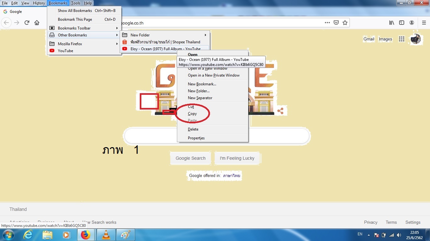 firefox ต้อง การ copy bookmark ภาพ 1 ไปวางทีขอบ ตามภาพ2 พอจาวางทีขอบ ตามภาพ 2