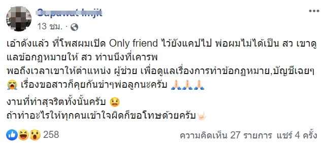 โพสต์ของบุคคลที่เกี่ยวข้องทางการเมือง โพสต์นี้ คุณว่าจ้อจี้หรือไม่?