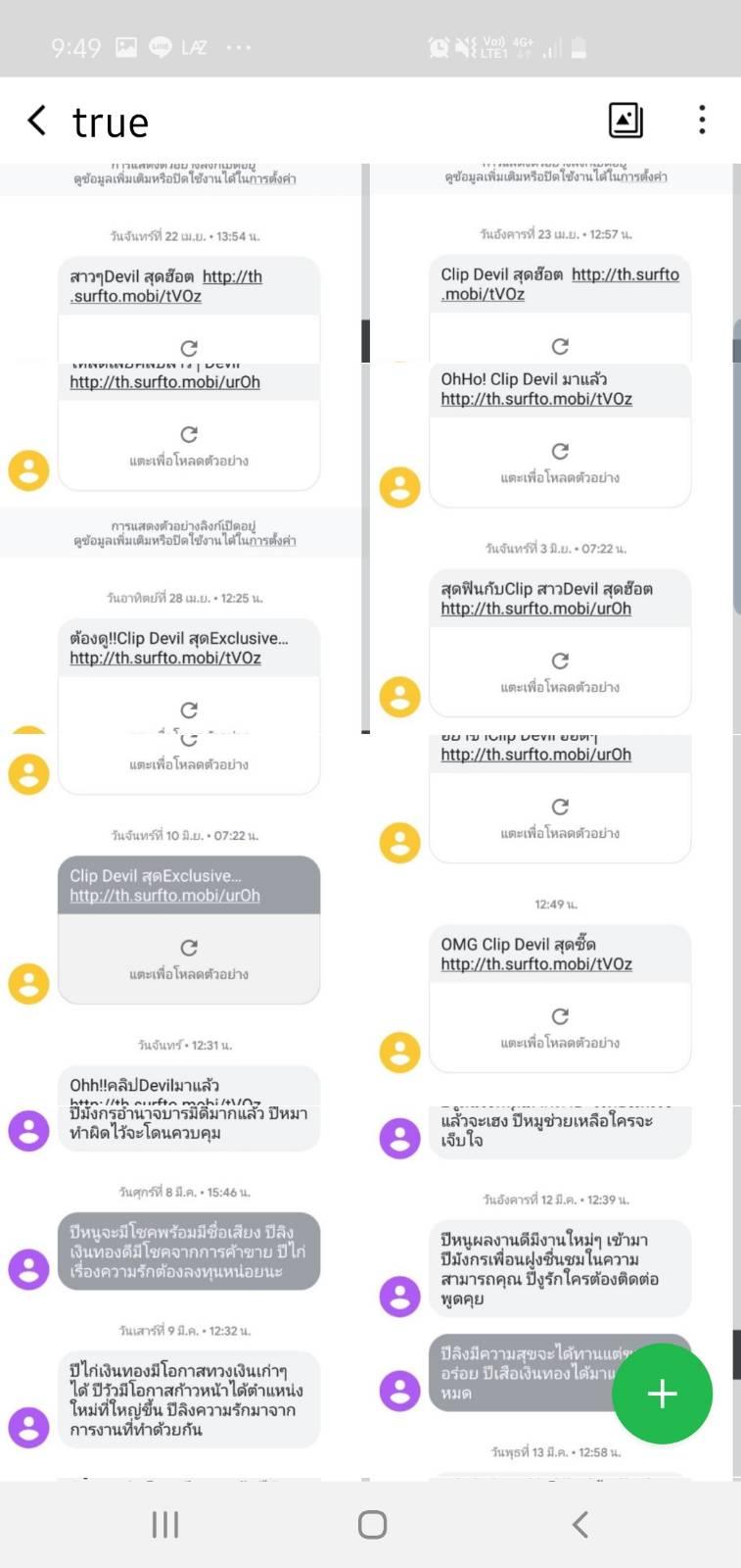 คือ... ผมได้รับข้อความแนะนำเว็ปพนันทุกวัน ผมกด *137 แล้วก็ยังมีอยู่เรื่อยๆ ปิดรับ SMS จากแอป True แล้วก็ยังมาอยู่ คือ ผมต้องทำยังไง เพราะเวลามีข้อความเข้ามา เงินในมือถือก็หายไปด้วย บอกก่อนว่าไม่ได้เข้