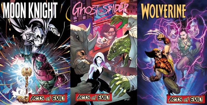 Acts of Evil ทั้งหมด 8 ภาพซึ่งเริ่มต้นด้วย The Magnificent Ms. Marvel ท่าทางจะเอาวายร้ายมารวมกันครึ่งแรก ครึ่งหลังเป็นฮีโร่ (มั้ง เดาเอา)