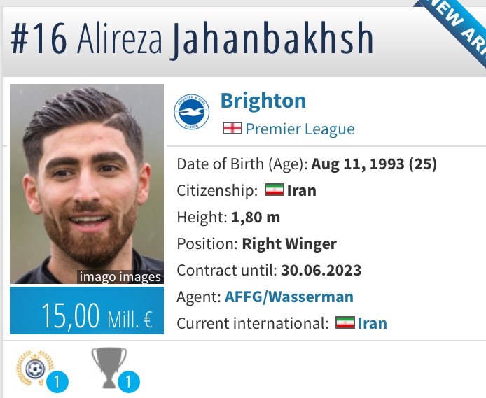 3. Alireza Jahanbakhsh (Iran, 15 ล้านยูโร)
