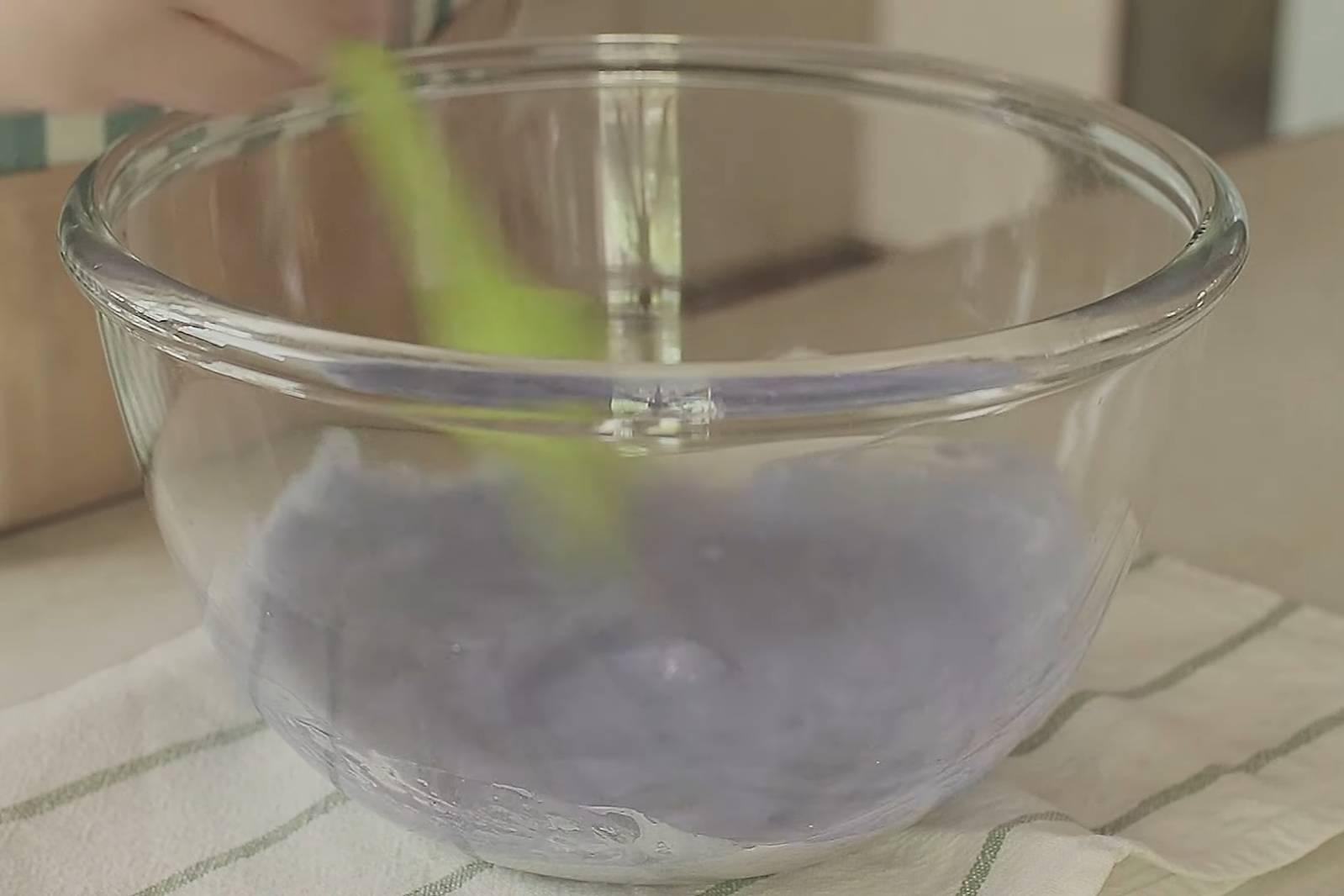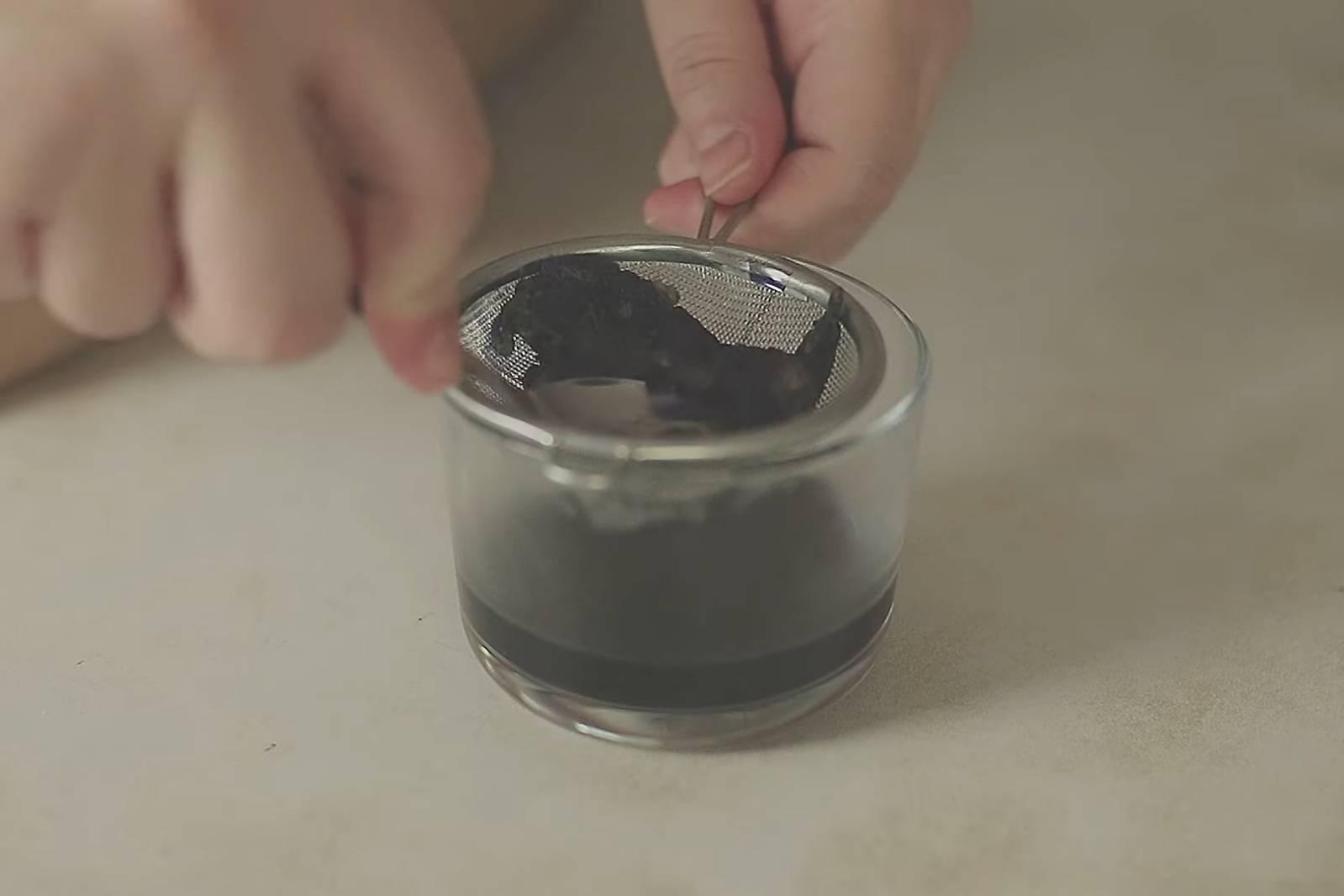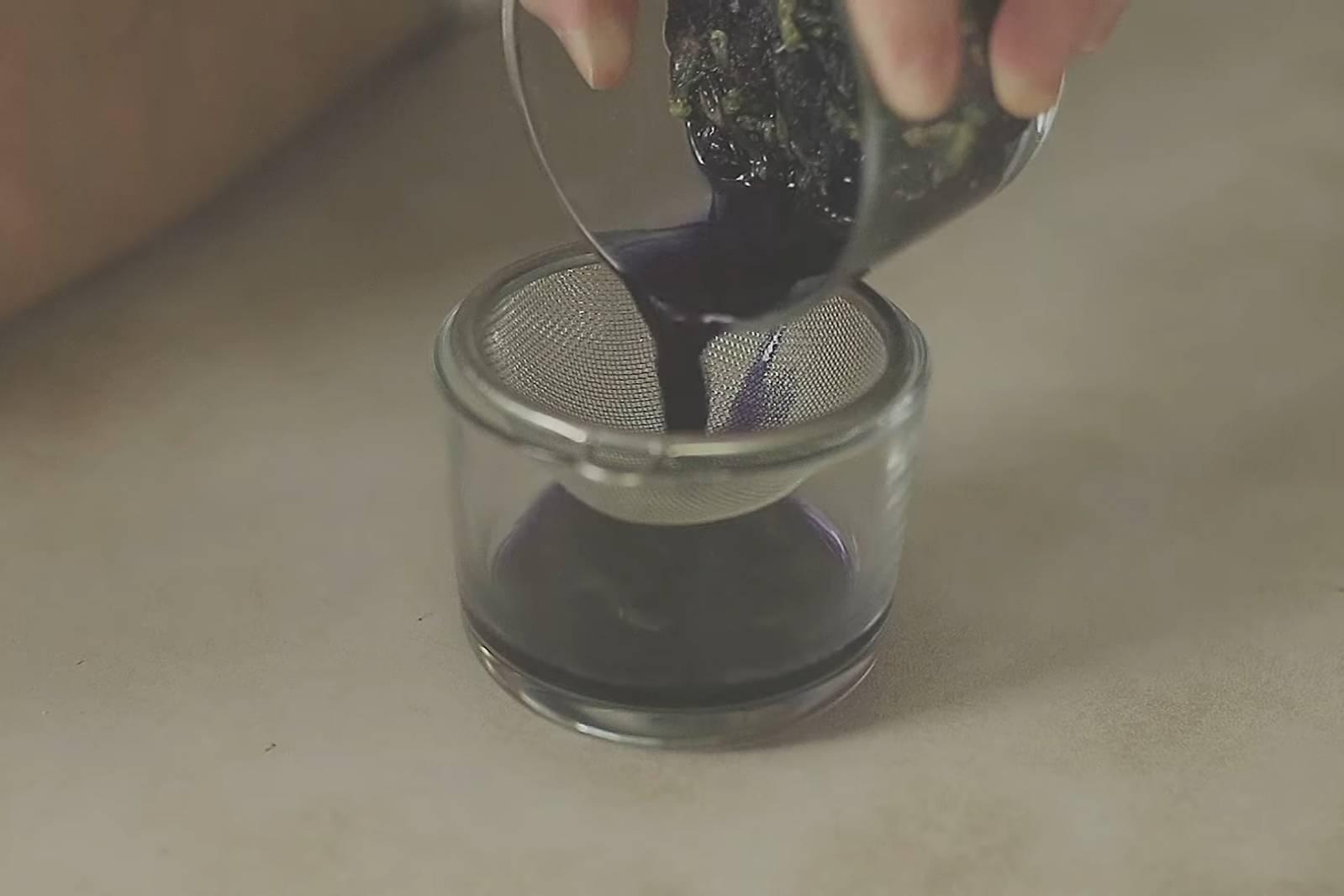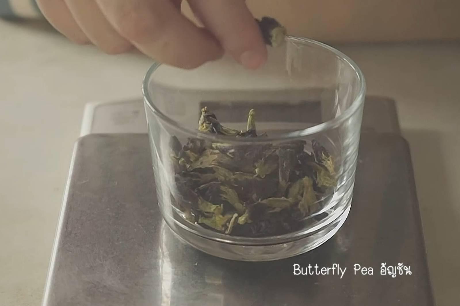 2. นำอัญชันแช่ในน้ำร้อน 3-5 นาที แล้วกรองน้ำ