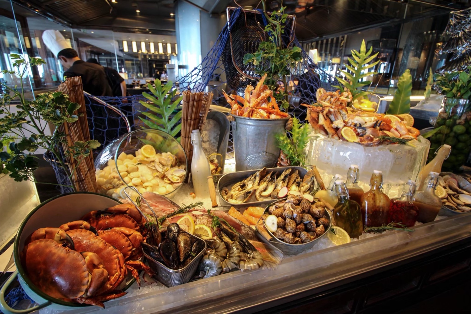 มุมอาหารทะเล สดและอร่อยมาก สามารถหยิบใส่จานแล้วให้เชฟปรุงให้เราได้เลย