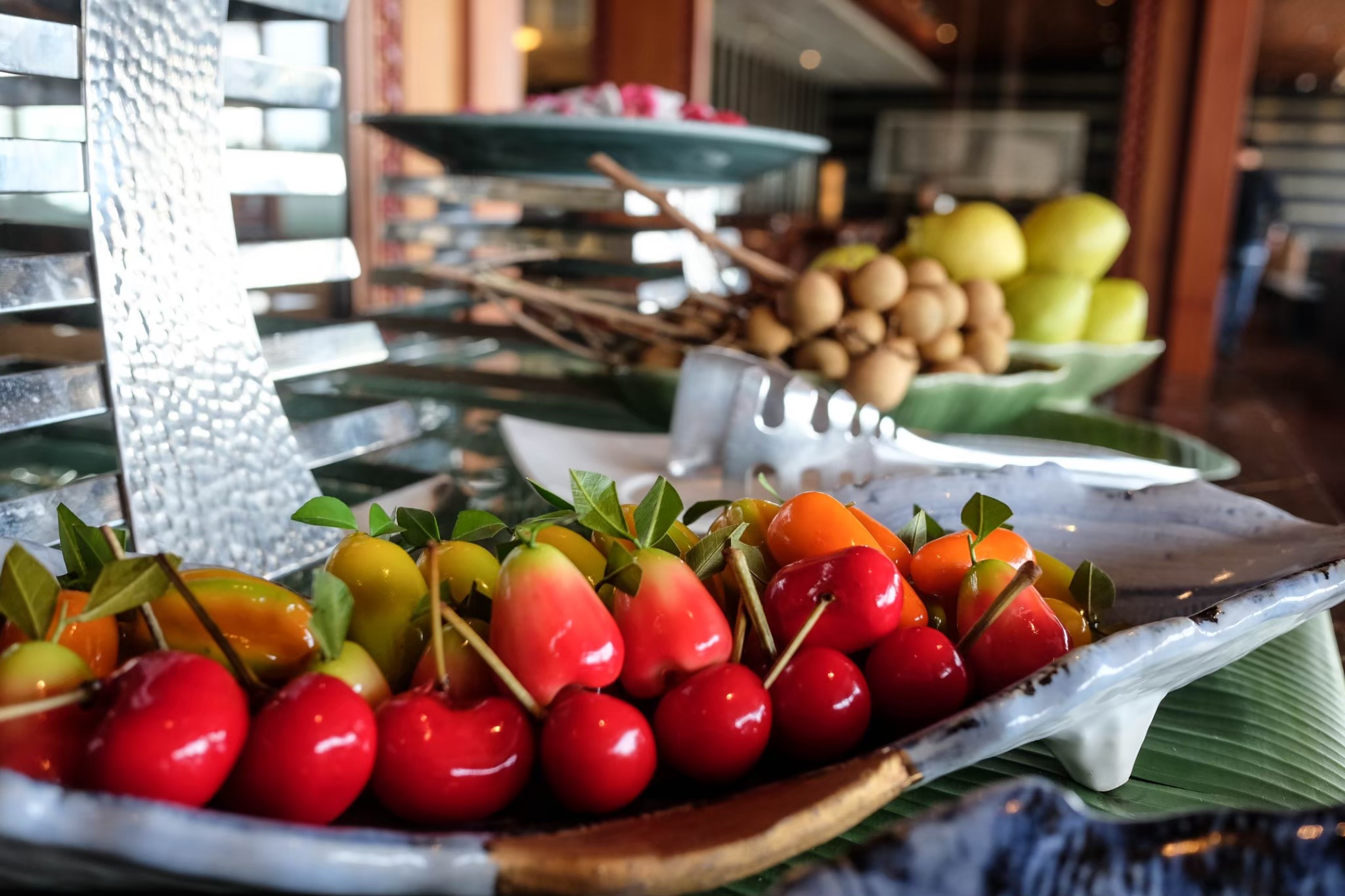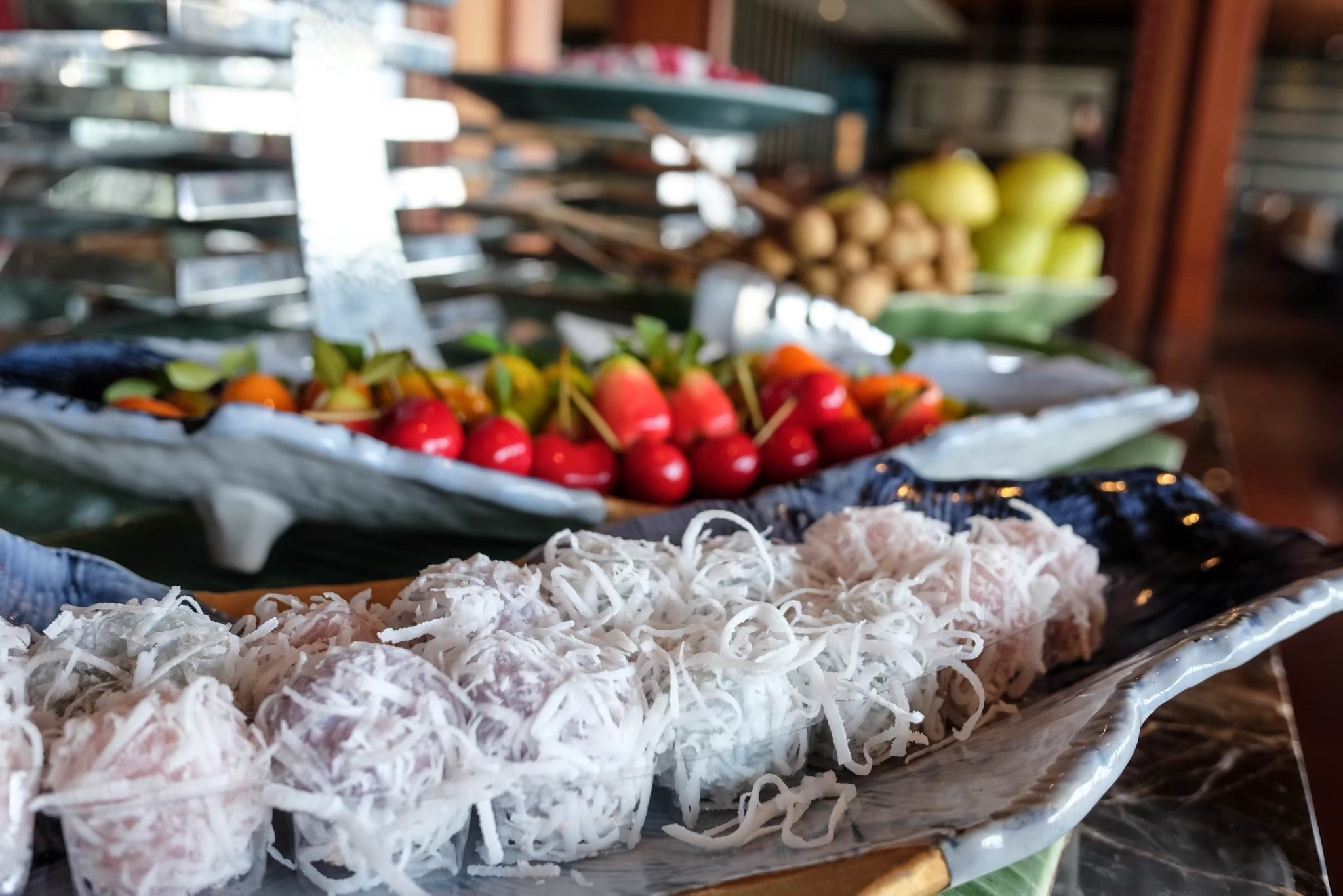 ขนมไทยก็มีน่ะ หรือจะทานผลไม้กรุบกริบแบบนางเอกก็ยังได้