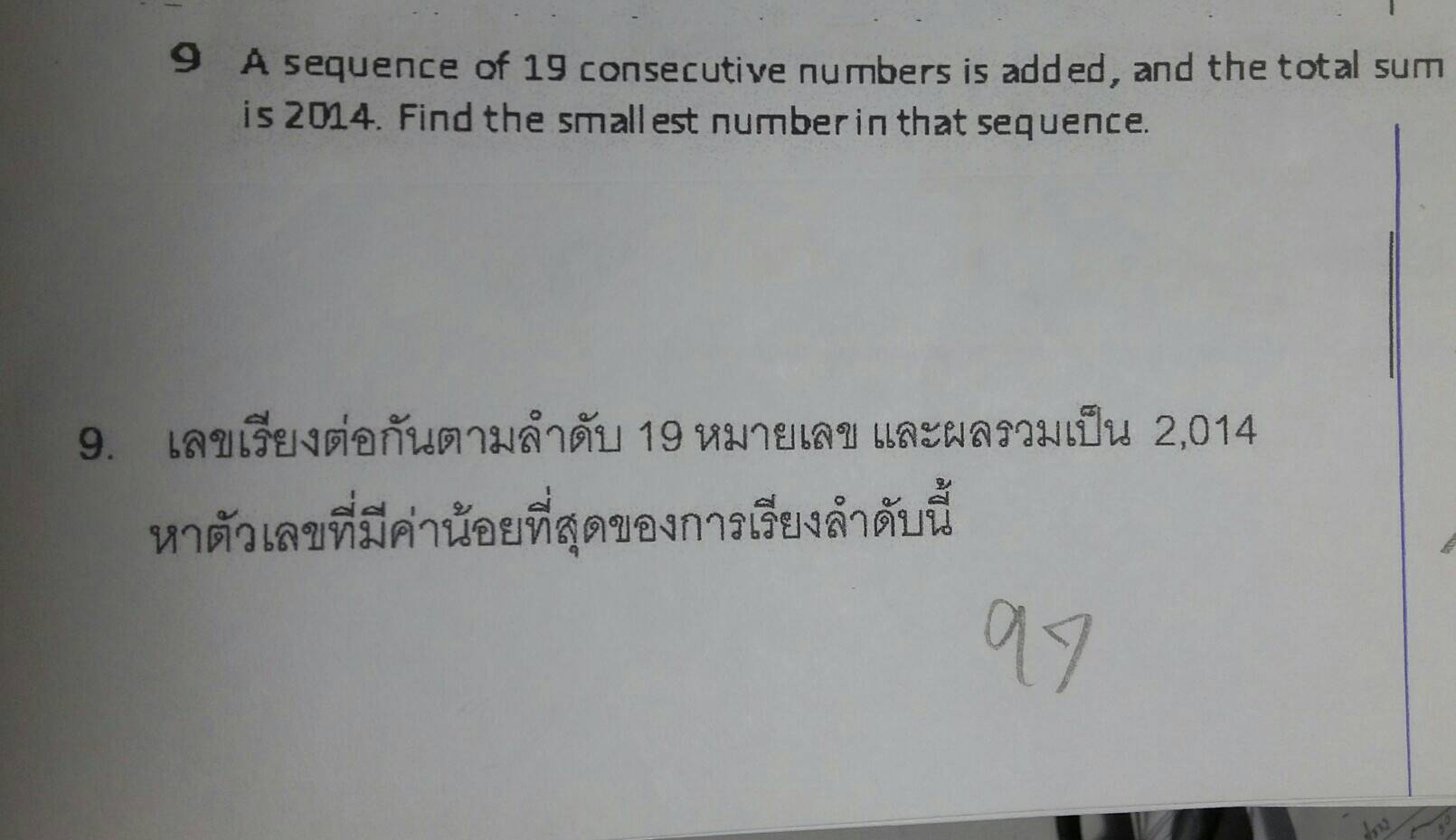 หาคำตอบได้เท่ากันกับหลาน คือ 97 แต่เฉลยตอบ 45 คะ ไม่รู้ว่าผิดตรงไหน ช่วยดูให้หน่อยคะ