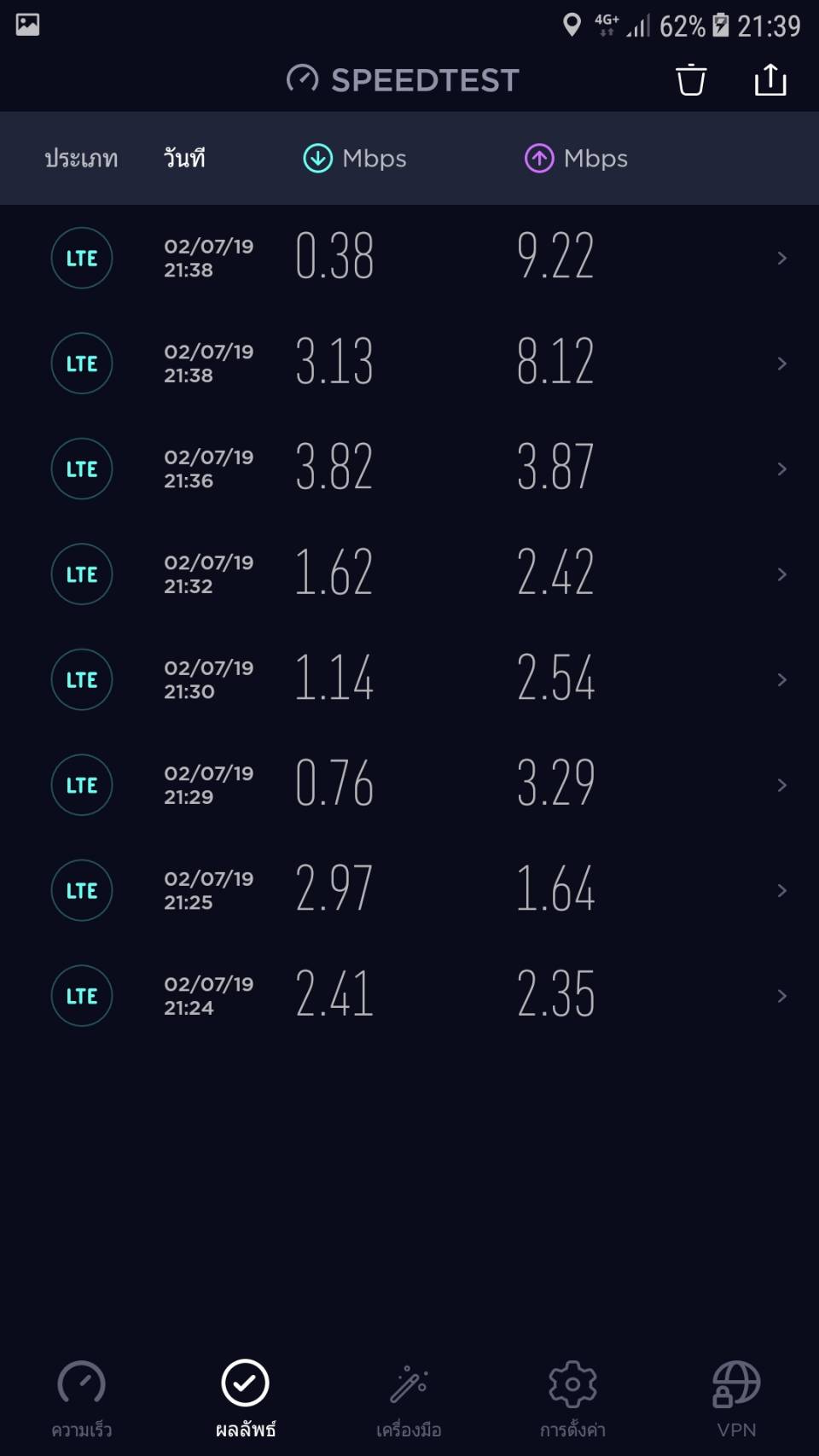 พร้อมเครื่อง Samsung J7+ พอกลับมาถึงบ้าน มีเวลาได้เล่น รู้สึกว่าทำไมเน็ตมันช้าจัง เลยลองเทสต์ดู ปรากฏว่าเน็ตดาวน์โหลดไม่ถึง 2Mb เอง ทั้งที่ตอนตัดสินใจเลือกโปรนี้ พนง.ที่ช็อปก็เทสต์ให้ดู (เครื่องที่พนง.ใช้ แต่ไม่รู้ว่าเครื่องอะไร เทสต์ได้เกิน 100Mb)