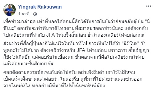 แต่นิชิโนะต้องกลับไปเคลียร์งานที่ JFA ก่อน