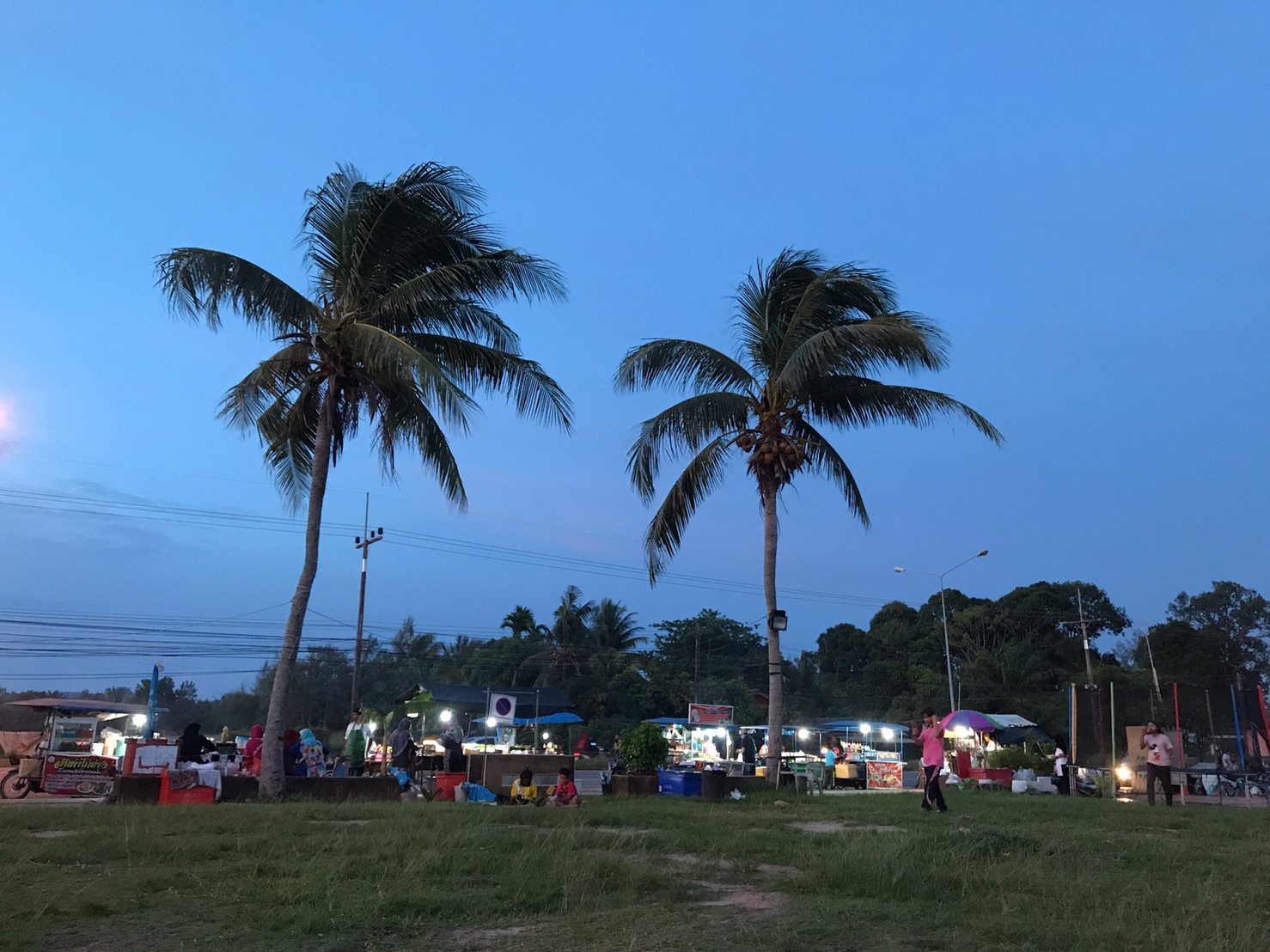 พอตกเย็นประมาณ 5 โมงเย็นเราออกมาเดินเล่นข้างนอกเพราะตรงข้ามรีสอร์ทเป็นทะเลแล้วเราเห็นควันเหมือนคนขายไก่ย่างเลยเดินไปดู และใช่จ้าใกล้ๆรีสอร์ทมีคล้ายๆตลาดริมทางเล็กๆที่มีคนมาขายของกินตามฟุตบาทแต่คนที่นี่เขาเรียกว่า "ตลาดนัด 18 ล้าน"