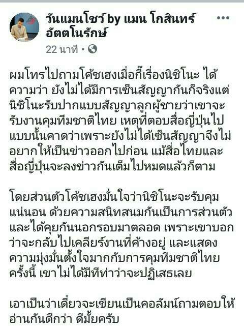 ตามกันต่อ เรื่องโค้ชทีมชาติไทย