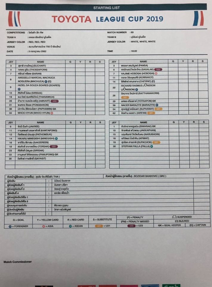 รายชื่อผู้เล่นทั้ง 2 ทีม