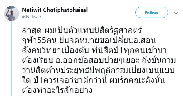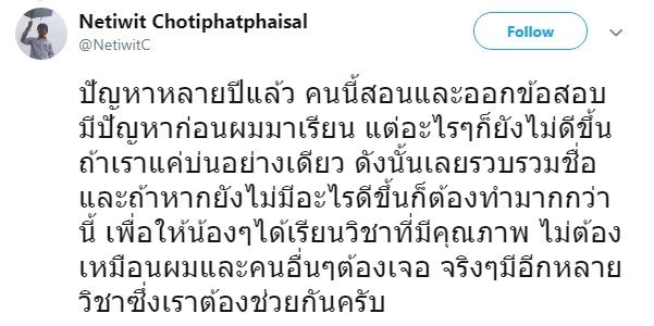 ถ้าเขาจะมองว่า อ.ที่สอนมีคุณสมบัติไม่เหมาะสม เขาก็มีสิทธิ์ยื่นเรื่องของเปลี่ยน