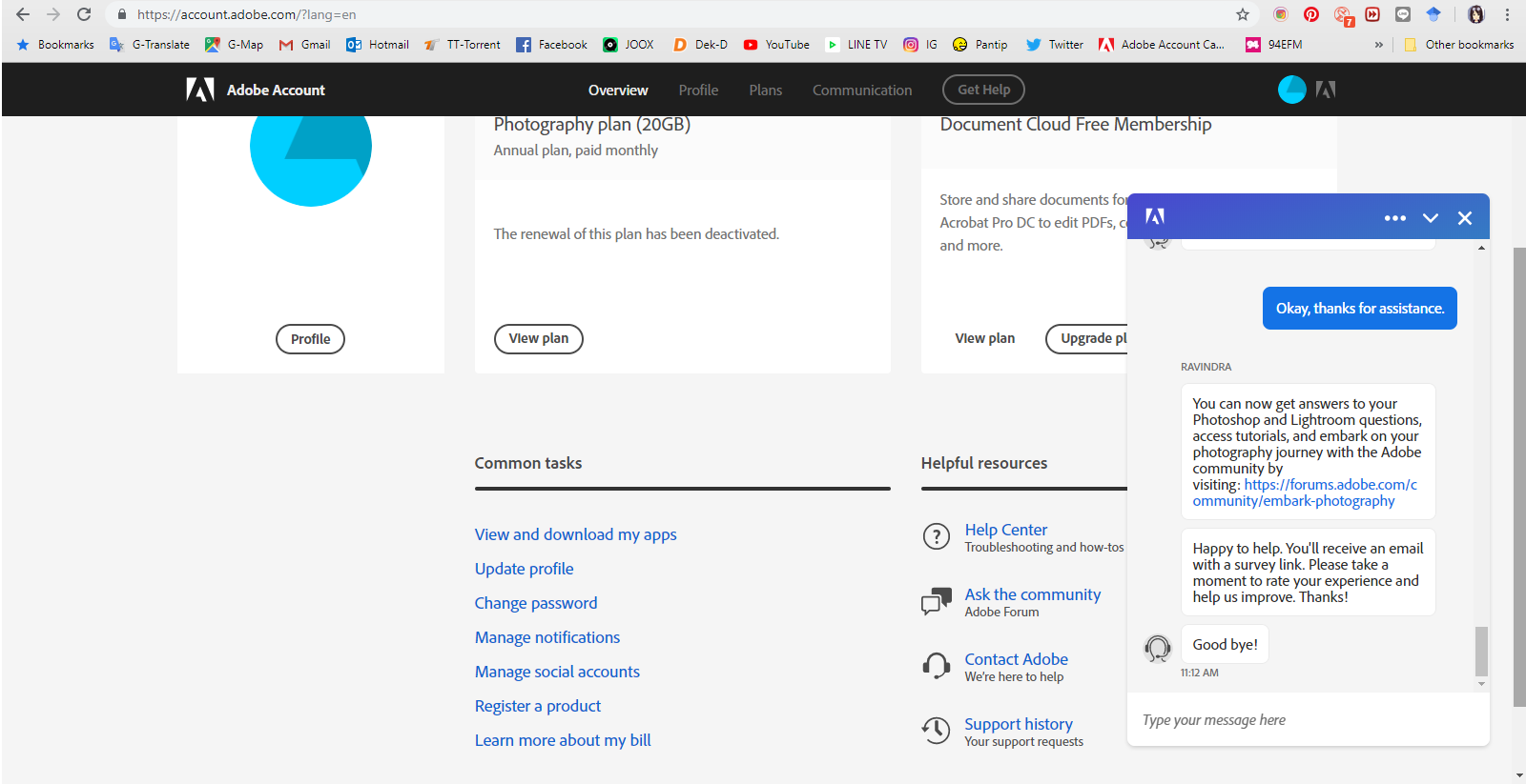 ทำไงดีทีนี้....ทำการ search หาข้อมูลว่ามีวิธีไหนที่จะขอยกเว้นค่าธรรมเนียมได้บ้าง ก็ไปเจอคลิปนึงในยูทูปบอกให้โทรไปหา adobe ค่ะ ห้าม cancel online เด็ดขาด ถ้าโทรไปจะสามารถขอยกเว้นค่าธรรมเนียมได้ แต่เรากด cancel ไปแล้ว และอยู่ประเทศไทยจะให้โทรต่างประเทศก็ลำบาก อังกฤษก็ไม่แข็งแรงเท่าไหร่ สุดท้ายไปจบที่ chat ในหน้า web เลยค่ะ โดยต้อง log in abobe account แล้วกดเข้าไปที่ contact adobe นะคะ