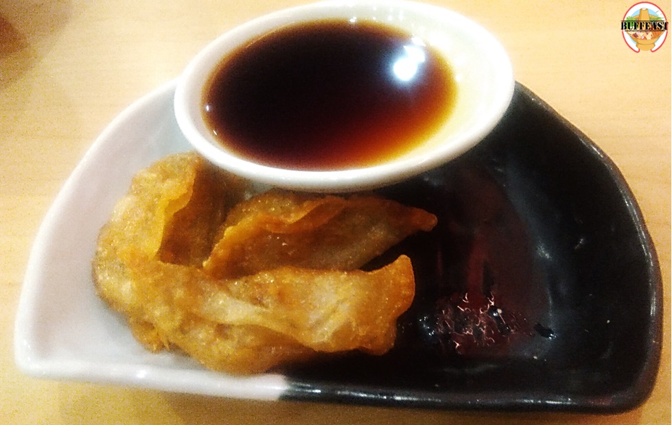 มากันที่เครื่องเคียงอย่าง เกี๊ยวซ่า แป้งค่อนข้างแข็ง เนื้อหมูเละ และเหม็นกุ๊ยช่ายมาก ไม่ดีเลยอันนี้