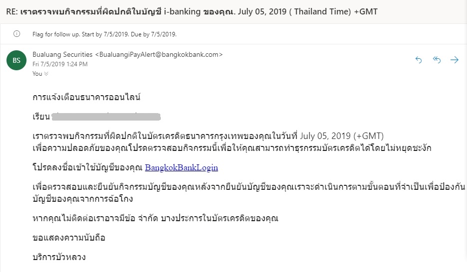 ได้รับเมล์ จาก bangkokbank.com ลักษณะแบบนี้น่ากลัวมากครับ
