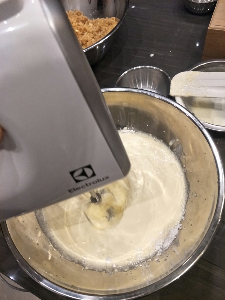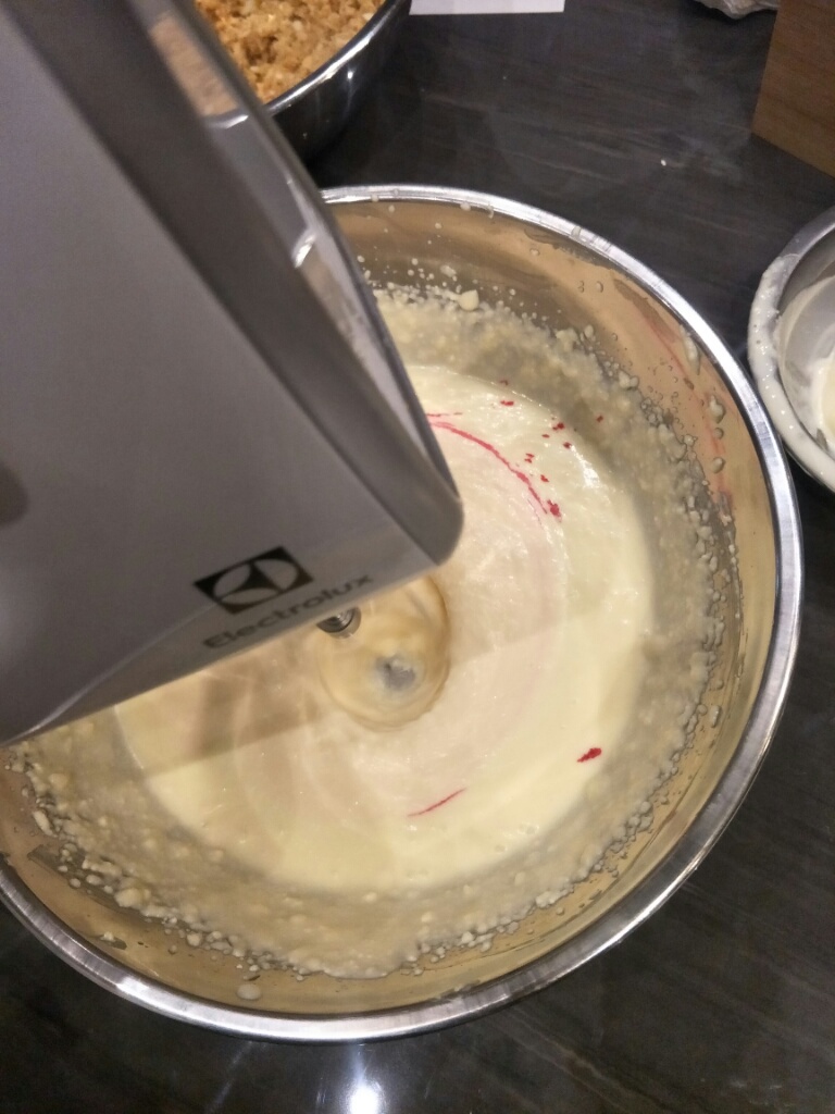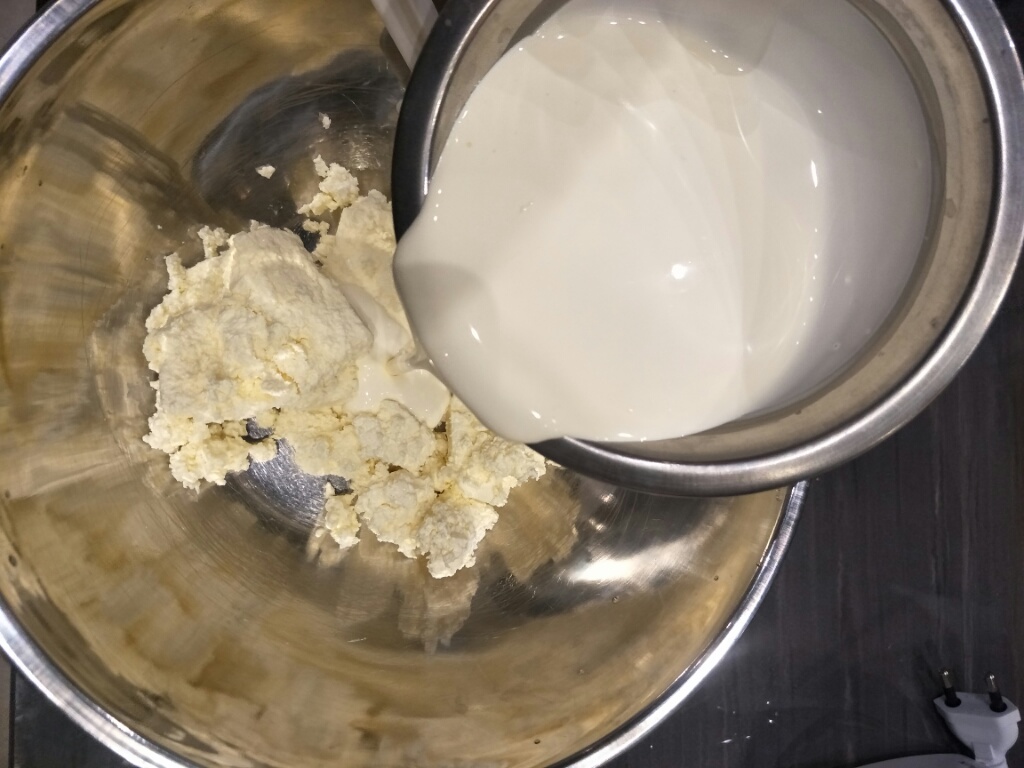 5. ตีส่วนผสมให้เข้ากันด้วยเครื่องตีแป้ง