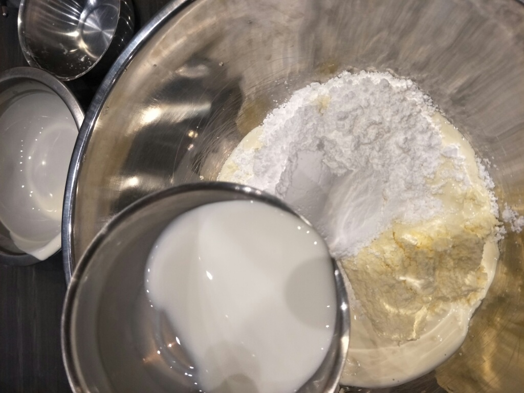 6. เทน้ำเลมอนลงไป ตีให้เป็นเนื้อเดียวกัน