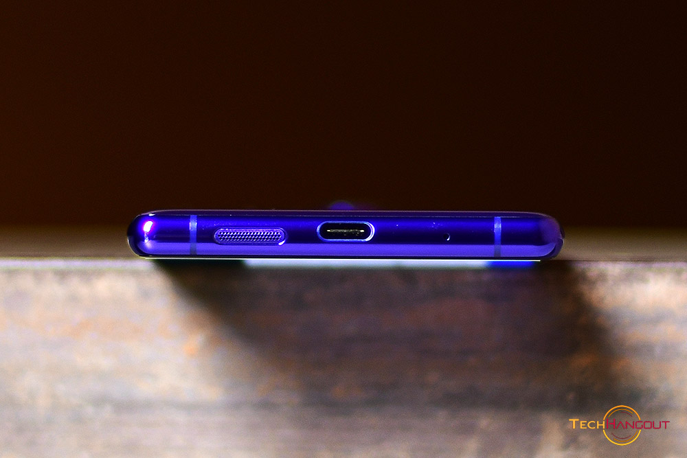 ในส่วนของขอบด้านล่างเครื่องนั้นจะเป็นการออกแบบที่สมมาตรมากขึ้นทั้งหน้าและหลัง เป็นลำโพงหลัก รู Type-C และ ไมค์ครับ ส่วนวัสดุขอบเครื่องนั้นจะเป็นแบบเงาและมีขีดเสาสัญญาณในส่วนนี้ครับ