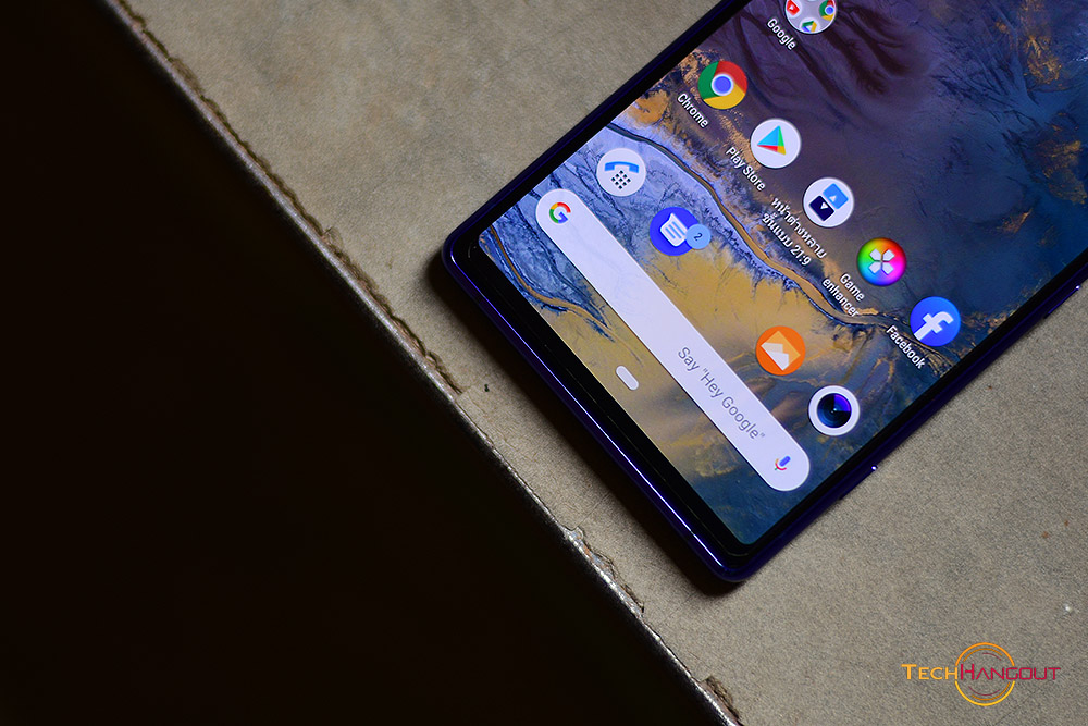 ขอบด้านล่างหน้าจอนั้นทำได้บางขึ้นเยอะเลยเพราะการออกแบบหน้าจอทำได้ดีขึ้นและไปหนาในส่วนข้างบนแทนที่เป็นที่อยู่ขอบพวกลำโพง กล้องหน้าต่างๆ ส่วนปุ่มควบคุมนั้นก็เป็นปกติแบบ Android 9 ครับ