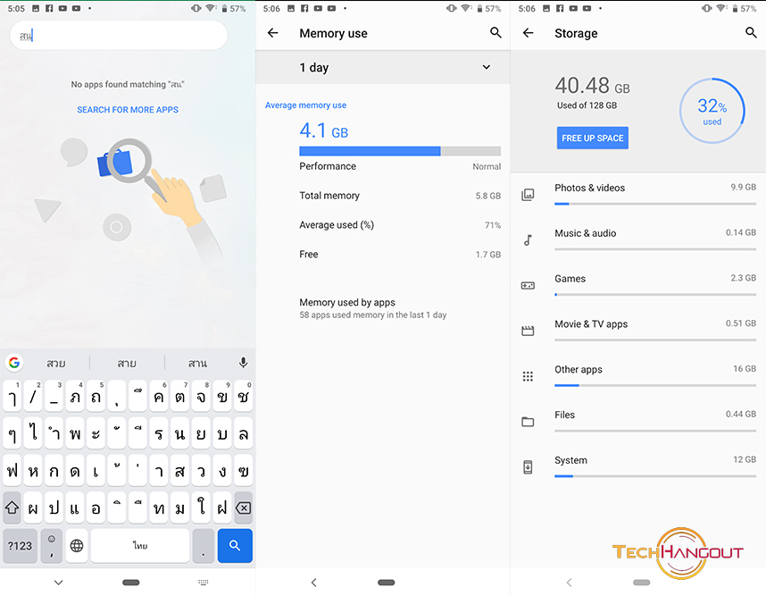 ตัวแป้นพิมพ์นั้นเป็นของ Google แน่นอนว่าใช้งานได้ดีและค่อนข้างเสถียร รวมถึงพิมพ์ได้ง่ายถนัดสำหรับตัวแอดมิน ส่วนเรื่องของ RAM นั้นจะมาพร้อมกับ 6 GB ใช้งานไป 4.1GB และความจำเครื่อง 128 GB ใช้งานได้ 116GB