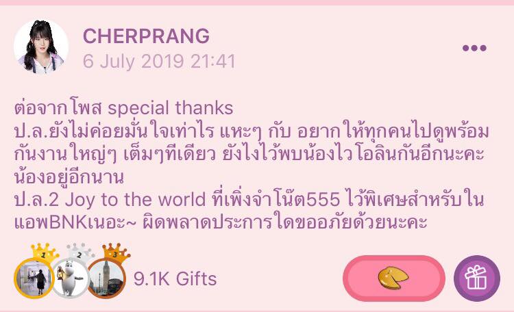 คลิปสั้นๆและข้อความยาวๆจากเฌอปราง
