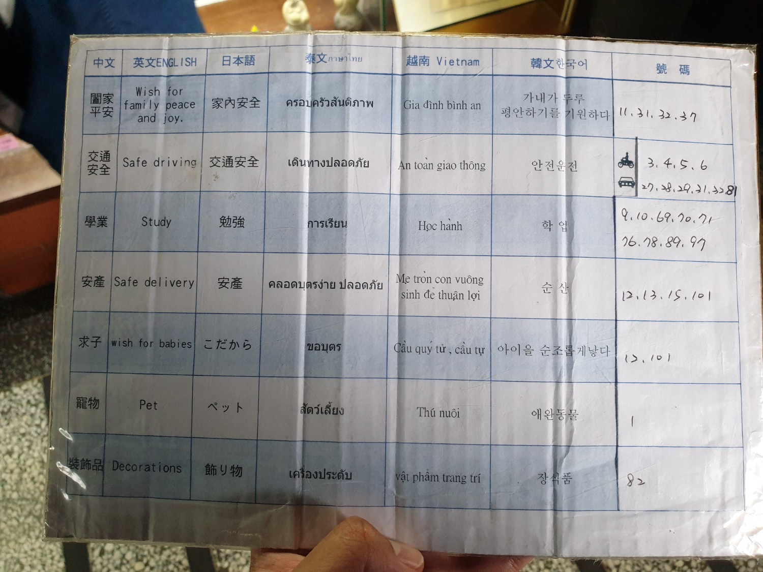 ใกล้ทางออก จะมีช๊อปของขลังที่ไว้ซื้อฝากกัน และที่สำคัญมีภาษาไทย และส่วนใหญ่ก็คนไทยซื้อด้วย (มั้ง) เพราะตอนไปซื้อ ก็ได้ยินแต่ภาษาไทยเลย 555 วิธีซื้อก็โคตรง่าย อยากได้เรื่องอะไร ความรัก การเงิน ต่างๆ ก็เลือกเบอร์เอา แล้วก็อยากได้แบบไหนก็เลือกเอา มีหลายราคา ไม่แพงด้วย (ที่ฮ่องกงแพงกว่าเยอะ) อยากได้อันไหน ก็เขียนใส่กระดาษยื่นให้พนักงาน