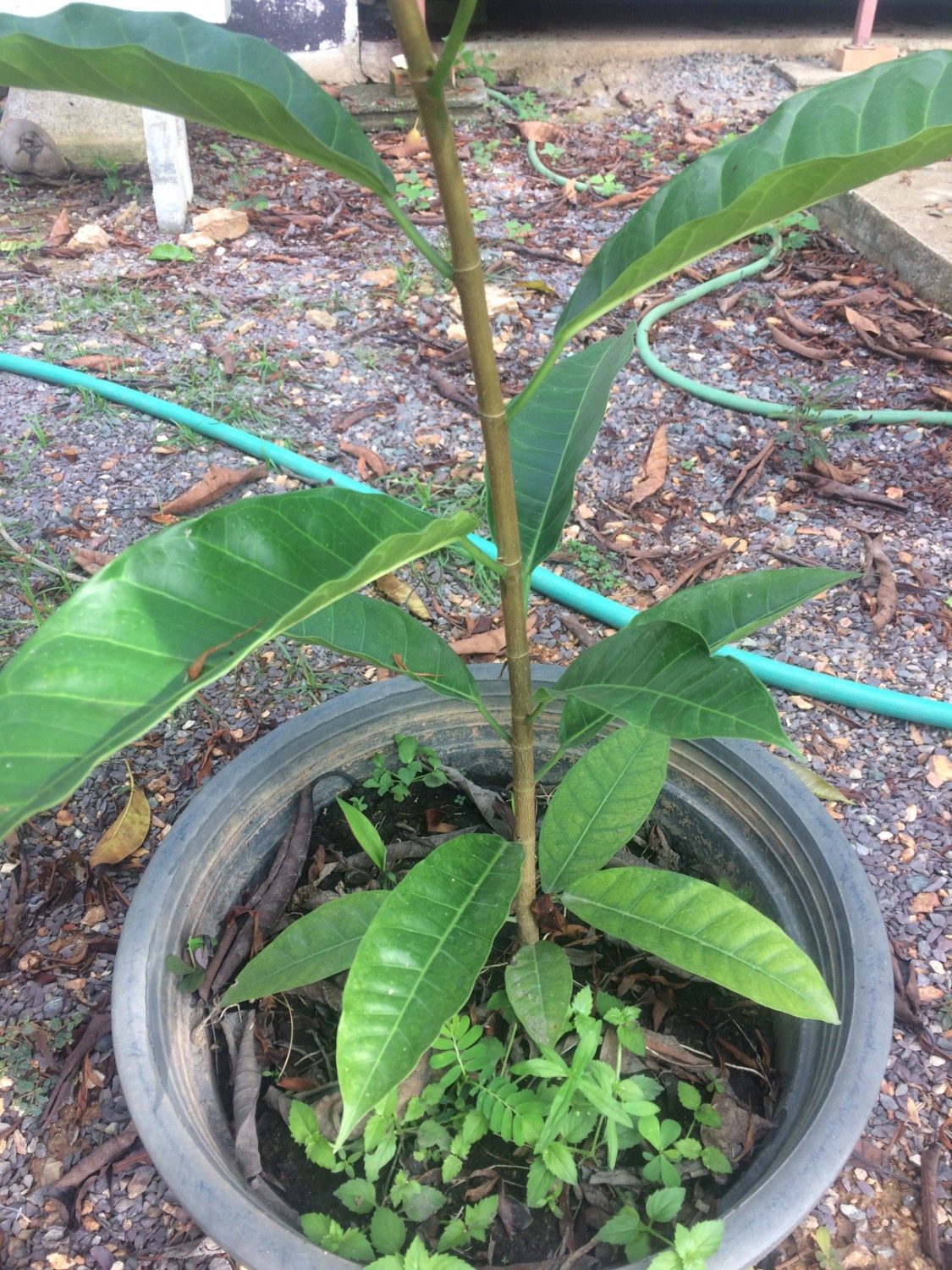 พอดีผมเจอขึ้นอยู่หลังบ้านโผล่ดินมาใบใหญ่มากก็เลยเอามาลงกระถาง พอโตขึ้นก็ตามภาพครับต้นตรงใบใหญ่มาก (ใบยาวประมาณ 20 ซม. ต้นสูง 1 เมตร) เหมือนจะรับน้ำหนักใบไม้ไหวตอนนี้ยังไม่แตกกิ่ง อยากทราบว่าคือต้นอะไรครับ ผมจะเอาลงดินไม่รู้ว่าต่อไปจะโตใหญ่แค่ไหน ขอบคุณครับ