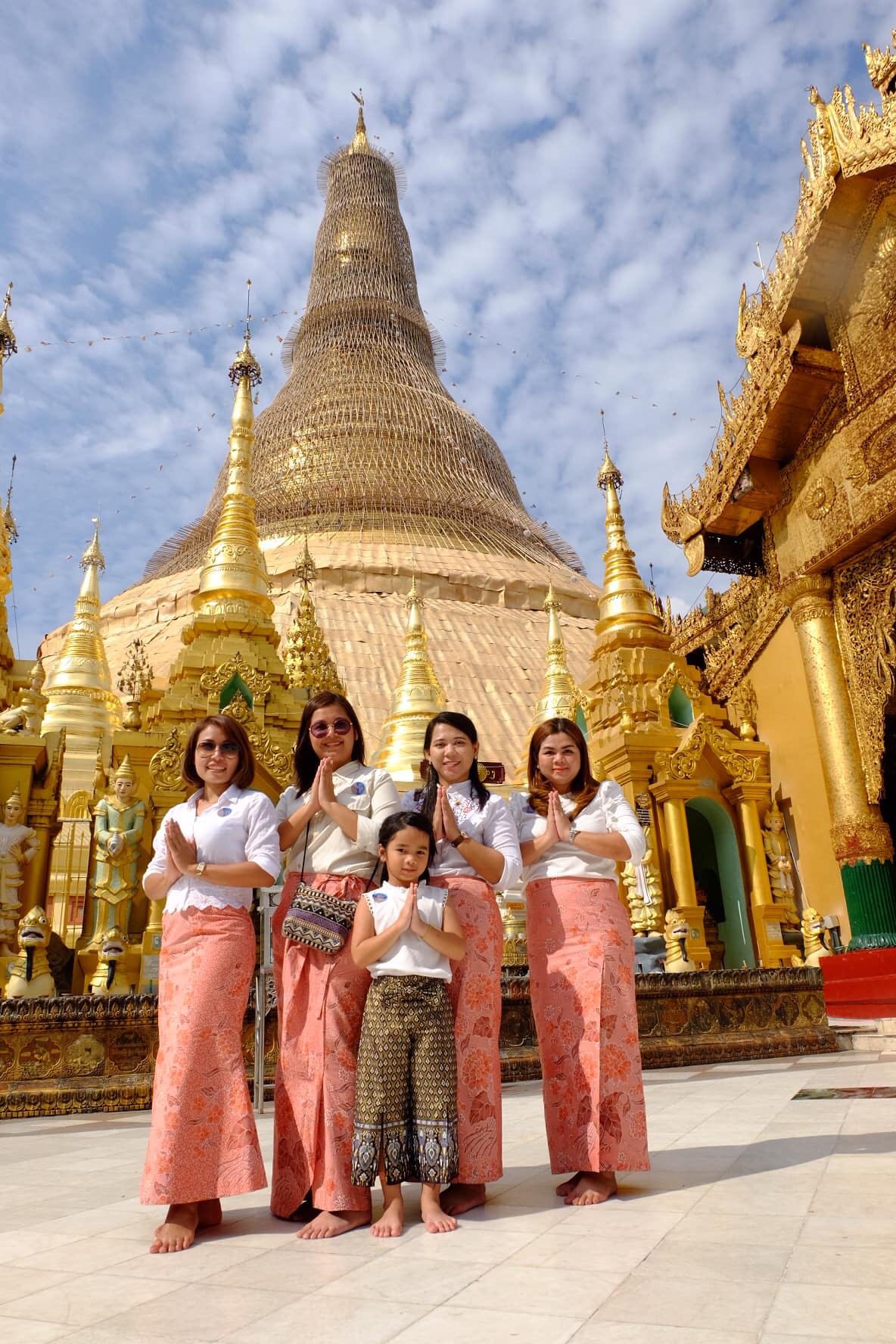 เรานัดแต่งตัวกันด้วยนะคะ คือคนมองตั้งแต่สนามบิน 555 และถ้ามาพม่าควรเตรียมรองเท้าแตะมาด้วยนะคะ เพราะต้องถอดรองเท้าตลอดเวลาเลยค่ะ