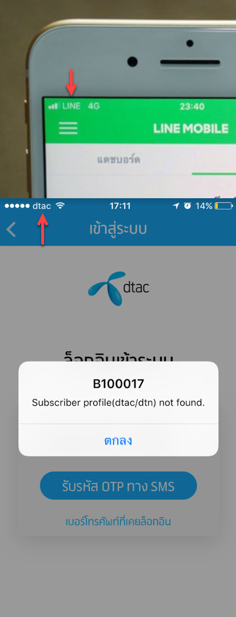 อยู่ดีๆสัญญาณขึ้นเปลี่ยนเป็น DTAC เลยลองสมัครแอป DTAC ปรากฎว่าไม่ได้