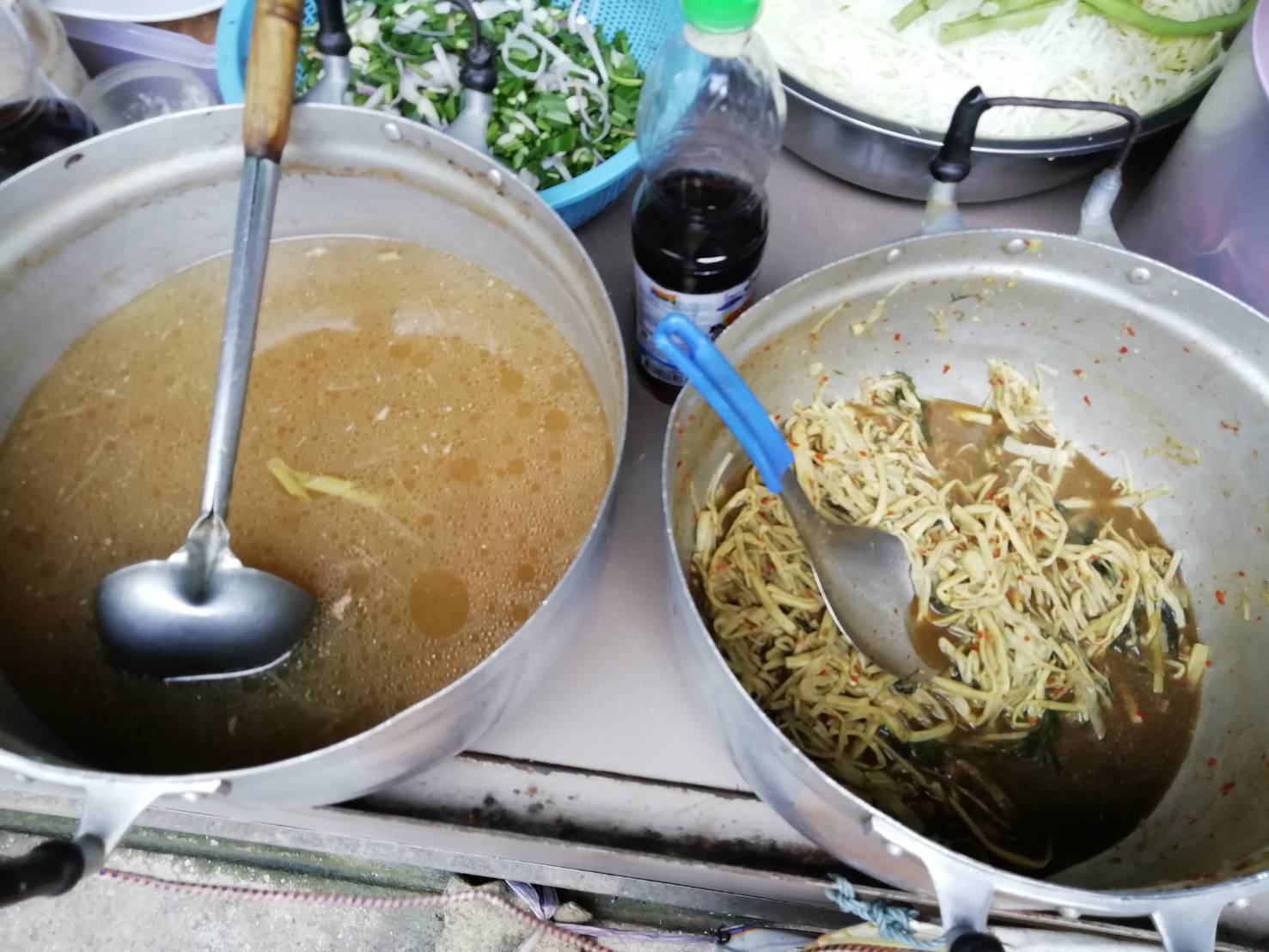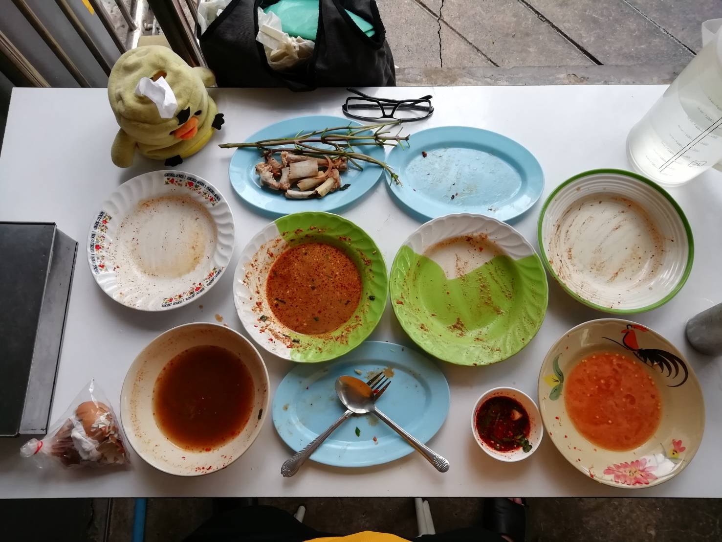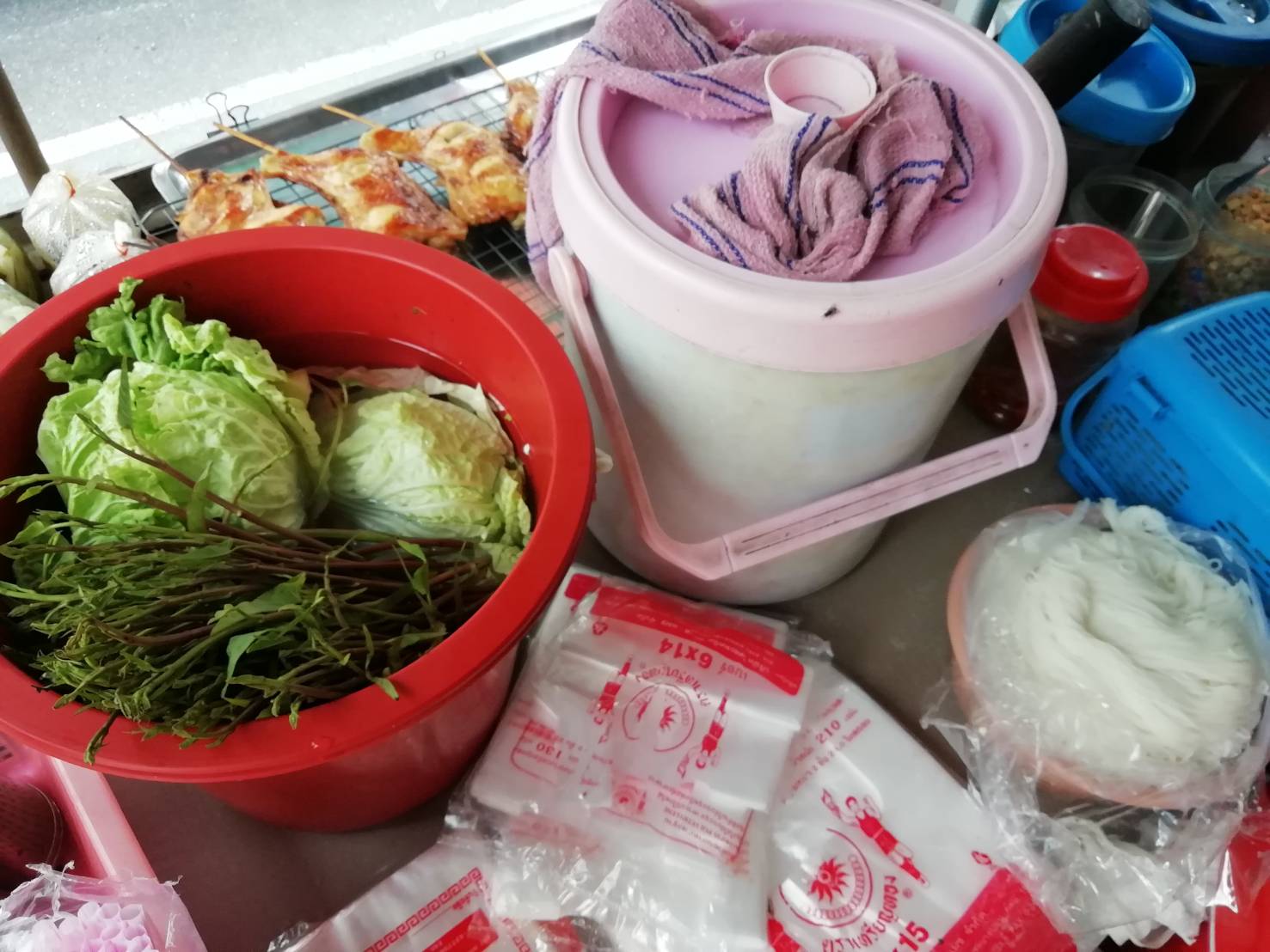 ถามแม่ค้าว่าที่ร้านขายไข่ต้มด้วยไหม ไม่ได้ขาย ก็เลยเอาไข่ต้มที่ซื้อมาปอกกินเพิ่ม