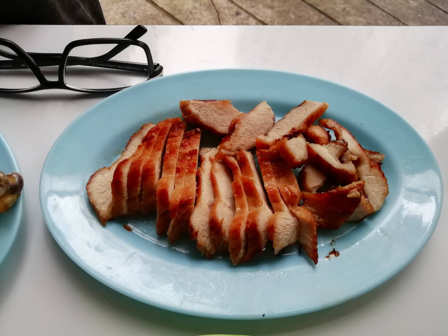 เดินออกมาปากซอยบ้าน ซอยวิภาวดีรังสิต 20 กะจะมากินบะหมี่ป๊อกๆ แต่คุณลุงคนขายบอก หมดเกลี้ยง เลยเดินมาอีกหน่อย เจอร้านหมูทอดออนซอน ไม่ได้คิดจะกิน แค่จะส่องดูอาหารว