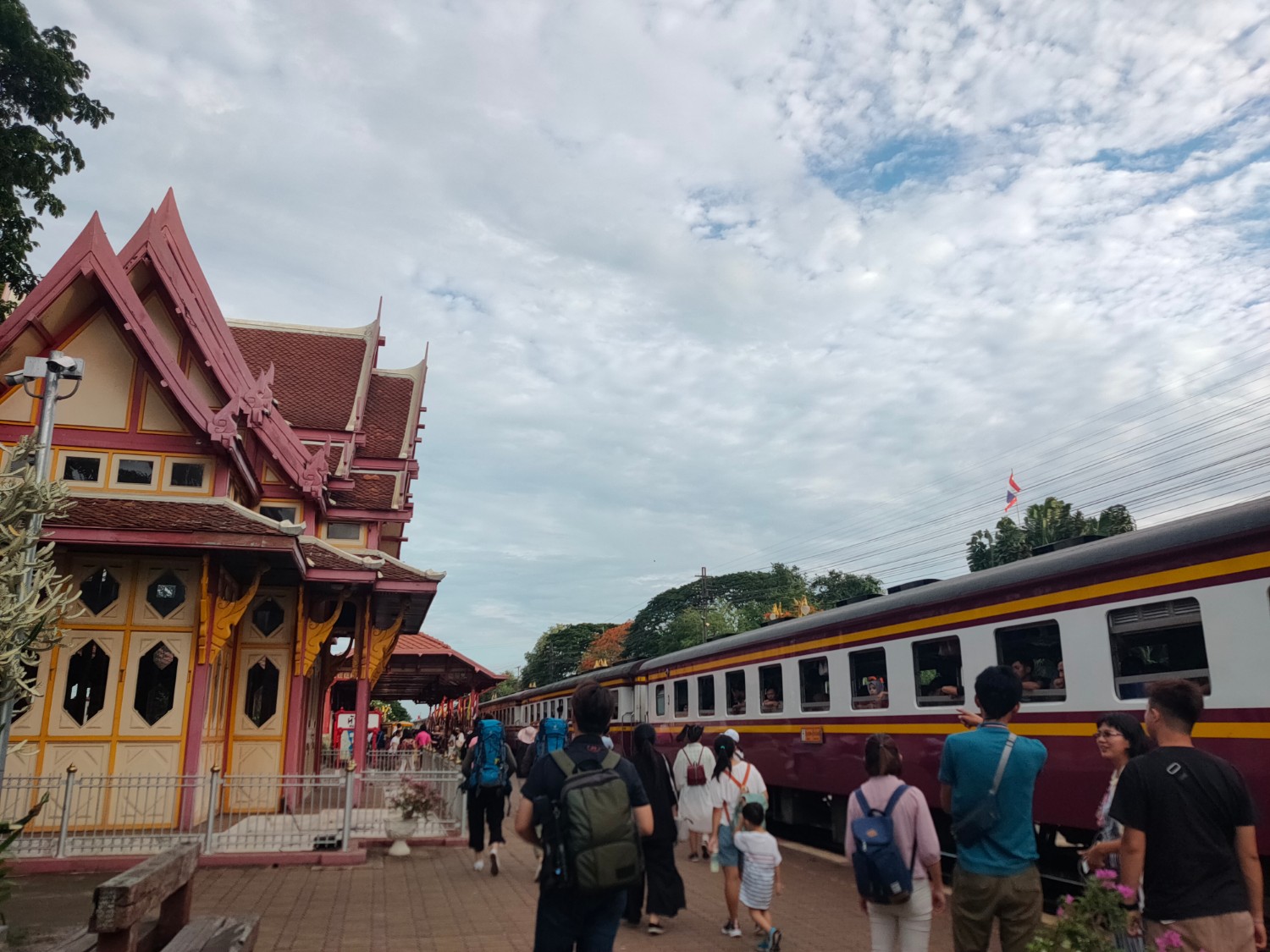 ถึงสถานนีหัวหินแล้วจ้า เกือบหกโมงนิดๆ แต่ขบวนนี้ไม่ได้เลทมากนะ ออกจากหัวลำโพงตรงเวลา เราว่าเรารู้สึกดีที่ได้นั่งรถไฟยังไงไม่รู้ 55555