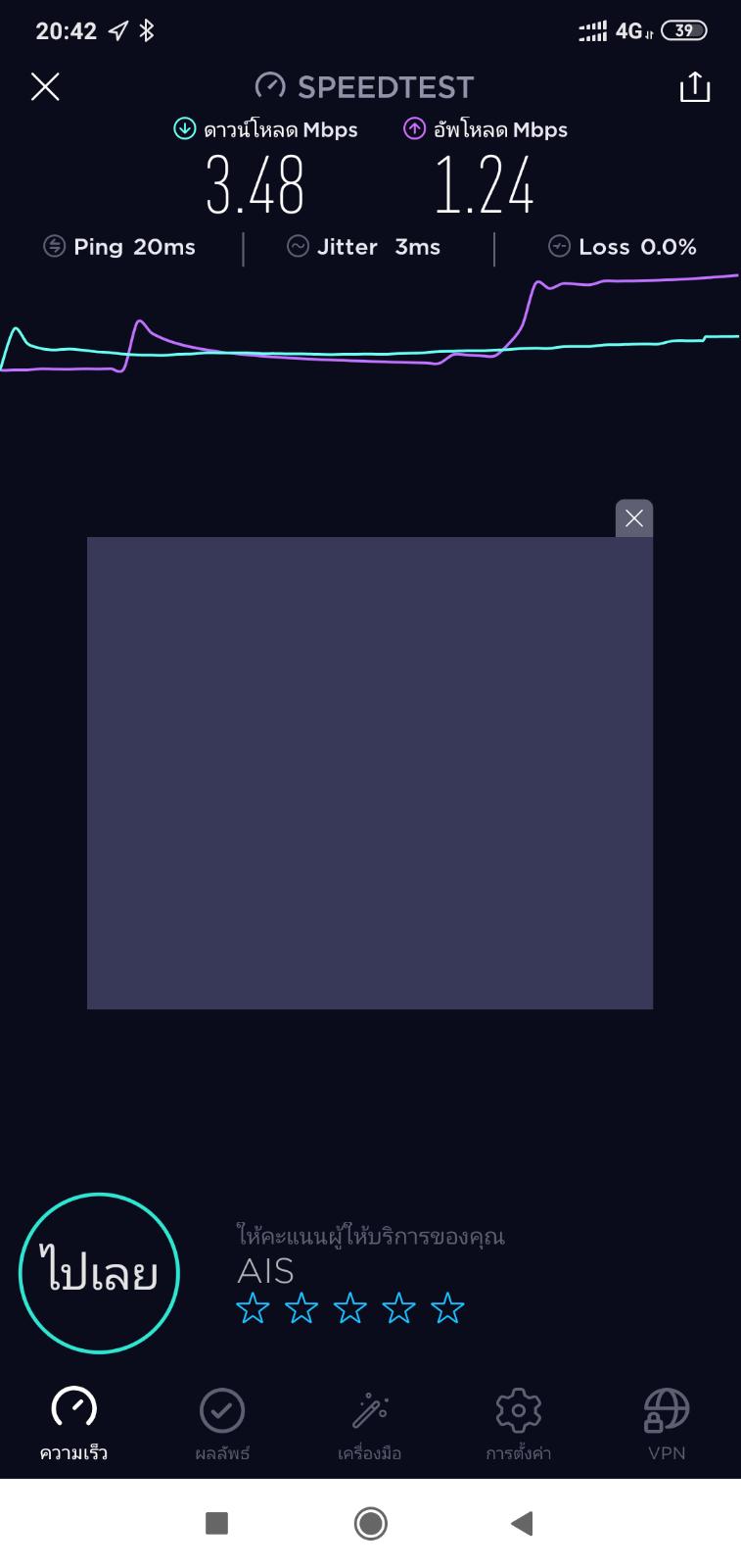 อินเตอร์เน็ตความเร็วสูงสุด ais แต่เทสสัญญานได้แค่นี้