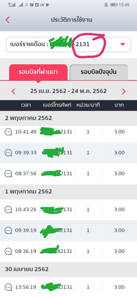 เลยเข้าไปดูประวัติการใช้งานอย่างละเอียด เลยเห็นว่ามีการเรียเก็บค่า sms เสียเงิน