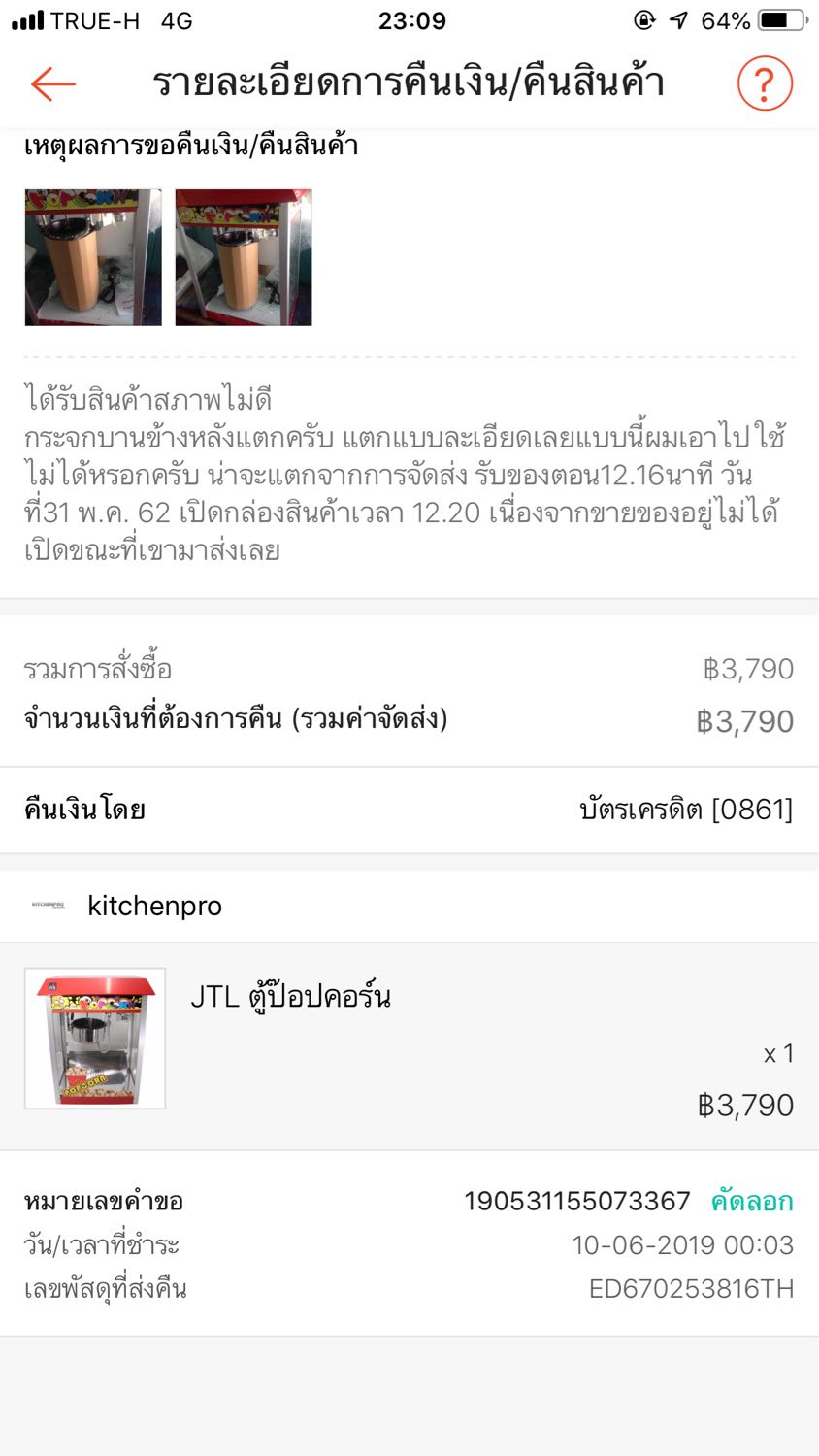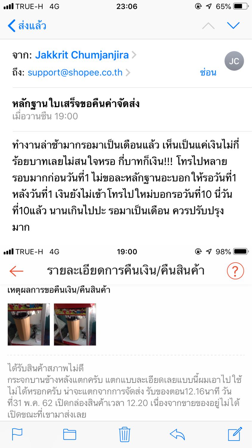 รอมา1เดือนแล้วครับ สรุปคือจะไม่ให้คืนใช่ไหม ทำเรื่องไปตั้งแต่วันที่10มิถุนา62 จนวันนี้วันที่12กรกฎา62 โทรไปประมาณวันที่20มิถุนาหลังจากได้เงินคืนเข้าบัตร บอกค่าจัดส่งต้องรออีก15วันถ้าวันที่1ไม่ได้ให้โทรมาอีกที หลังวันที่1กรกฎาโทรไปใหม่บอกให้รออีกถ้าวันที่10ไม่ได้จะรีบดำเนินการ แล้วพึ่งมาขอหลักฐานสลิปค่าจัดส่งตอนนี้และยังบอกให้ส่งเสตจเมนย้อนหลังตั้งแต่วันที่10มิถุนา-10กรกฎาให้อีก คือเยอะมากยุ่งยาก คุณทำไมไม่บอกแบบนี้ตั้งแต่ก่อนวันที่1 การติดต่อสื่อสารดำเนินการห่วยแตก จะหาเรื่องไม่คืนเงินมากกว่า ควรปรับปรุงอย่างมากทั้งๆที่สลิปและทุกอย่างส่งให้ตั้งแต่คืนสินค้ากลับ