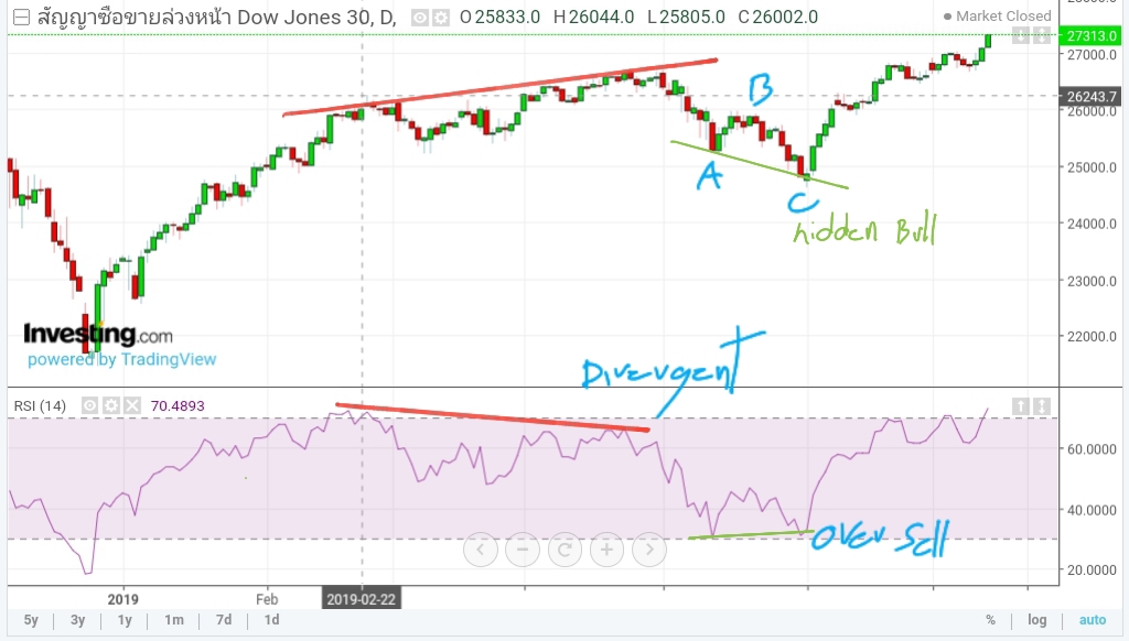 เกิด divergent ...ทำให้ rsi over sell... ราคา ทำ abc