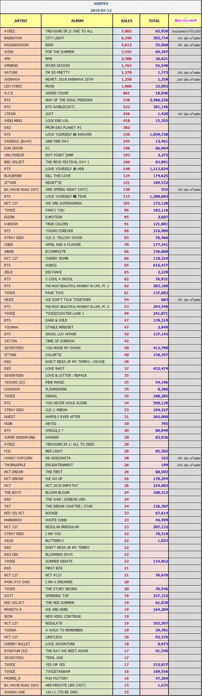ยอดซื้ออัลบั้มจากชาร์ต HANTEO 12 พฤษภาคม 2562 + Best Selling Hanteo & Gaon
